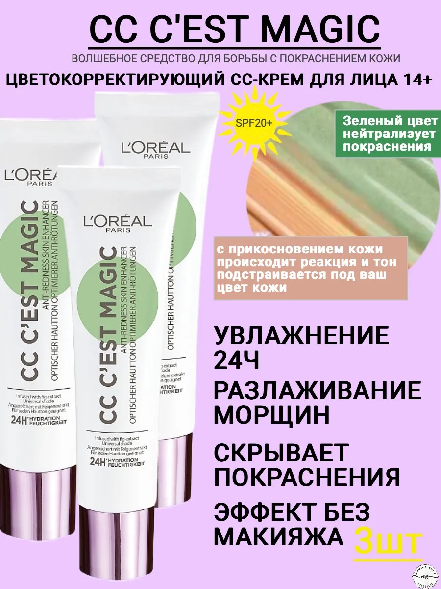 КомплектацияЦветокорректирующий CC-крем для лица CC CEST MAGIC; 3шт; cc-крем loreal; сс крем лореаль