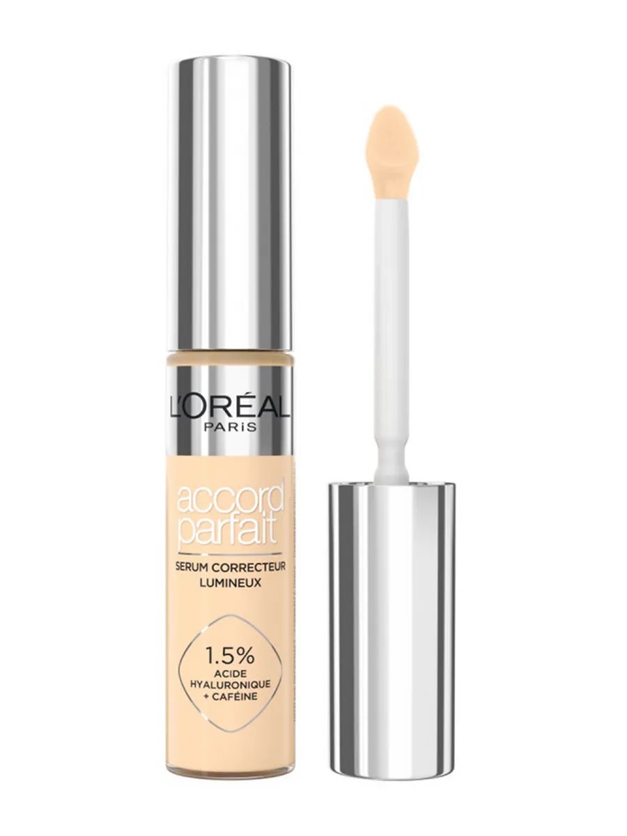 The radiant L'Oreal Paris Accord Parfait concealer-serum hides imperfections like a concealer and cares like a serum. The innovative triangular applicator provides even coverage, does not emphasize wrinkles and disguises dark circles under the eyes.