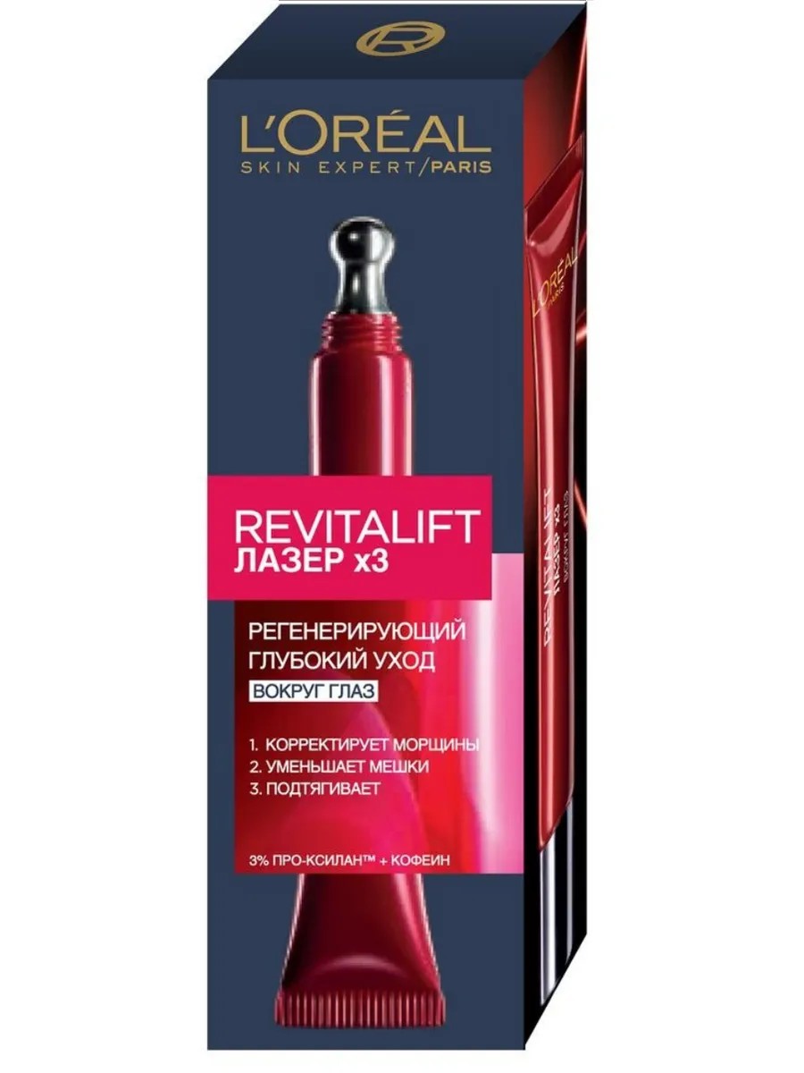 Specialists at L'Oréal Paris Laboratories have developed an innovative anti-aging eye cream, Revitalift Laser. Fragmented hyaluronic acid intensively smoothes wrinkles, penetrating and filling the deepest layers of the skin. Pro-Xylan tightens and strengthens the skin's supporting fibers. A metal applicator ensures comfortable and pleasant application, gently cooling and evenly distributing the product on the delicate skin around the eyes. Caffeine is included in the cream to improve microcirculation in skin cells, combating puffiness and bags under the eyes, tightening and firming the skin.