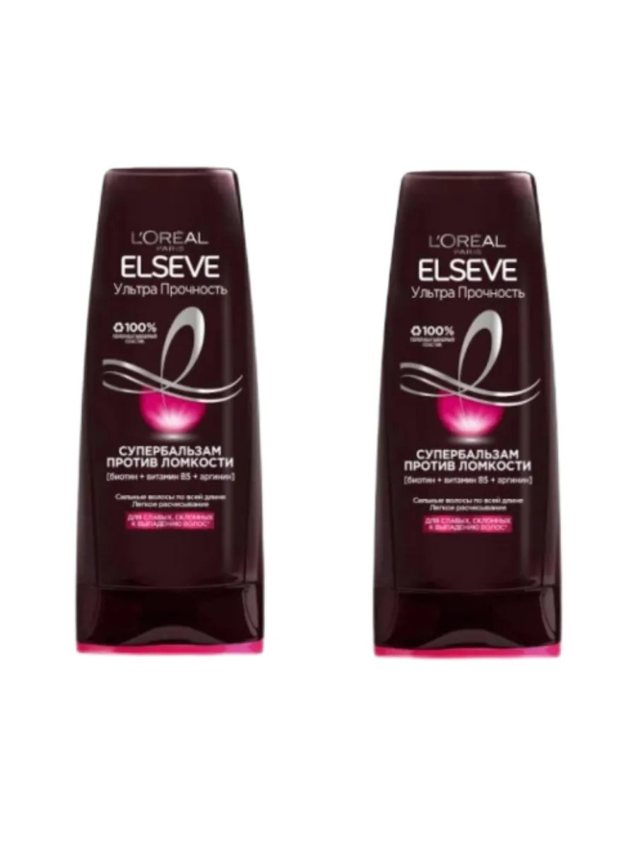 Elseve, бальзам для волос, против ломкости, ультра прочность, 400 мл, 2 шт. Уникальная формула бальзама «Супербальзам Против Ломкости» наполнена активными добавками, которые делают волосы более сильными по всей длине и способствуют легкому расчесыванию: биотин + витамин B5 + аргинин. Для слабых, склонных к выпадению волос.