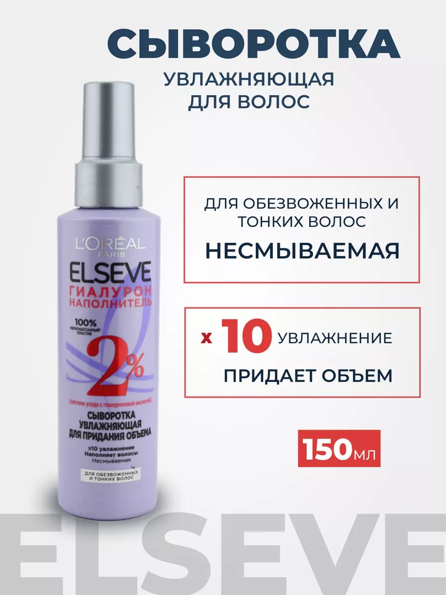 L'Oreal Paris HYALURON Serum, 150ml. Moisturizing serum ELSEVE [Hyaluron] Filler from L'Oreal Paris enriched with a 2% care system with HYALURONIC ACID. Moisturizing serum, enriched with a 2% care system with hyaluronic acid, intensively moisturizes, increasing hair in diameter by up to 9%, giving it a more voluminous look. As a result, your hair is 10 times more hydrated, without weighing it down. Leave-in serum. HOW TO USE: Apply the serum to dry or damp hair along the entire length, paying special attention to the ends.