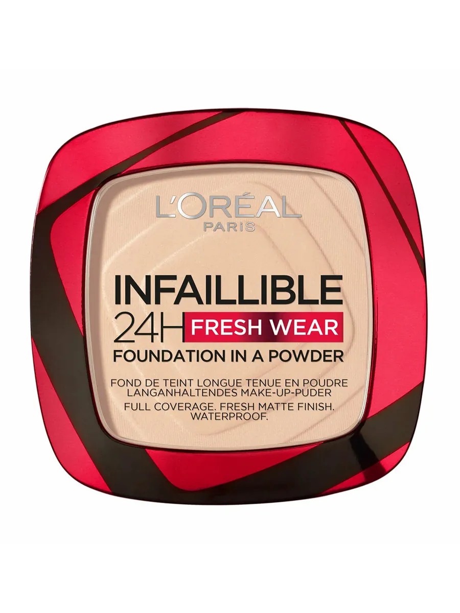 The new generation Infaillible 24H Fresh Wear powder from L'Oreal Paris combines the best of both worlds: the coverage and durability of foundation and the natural matte finish of powder. Visibly evens skin tone and texture. Long-lasting matte finish for 24 hours.