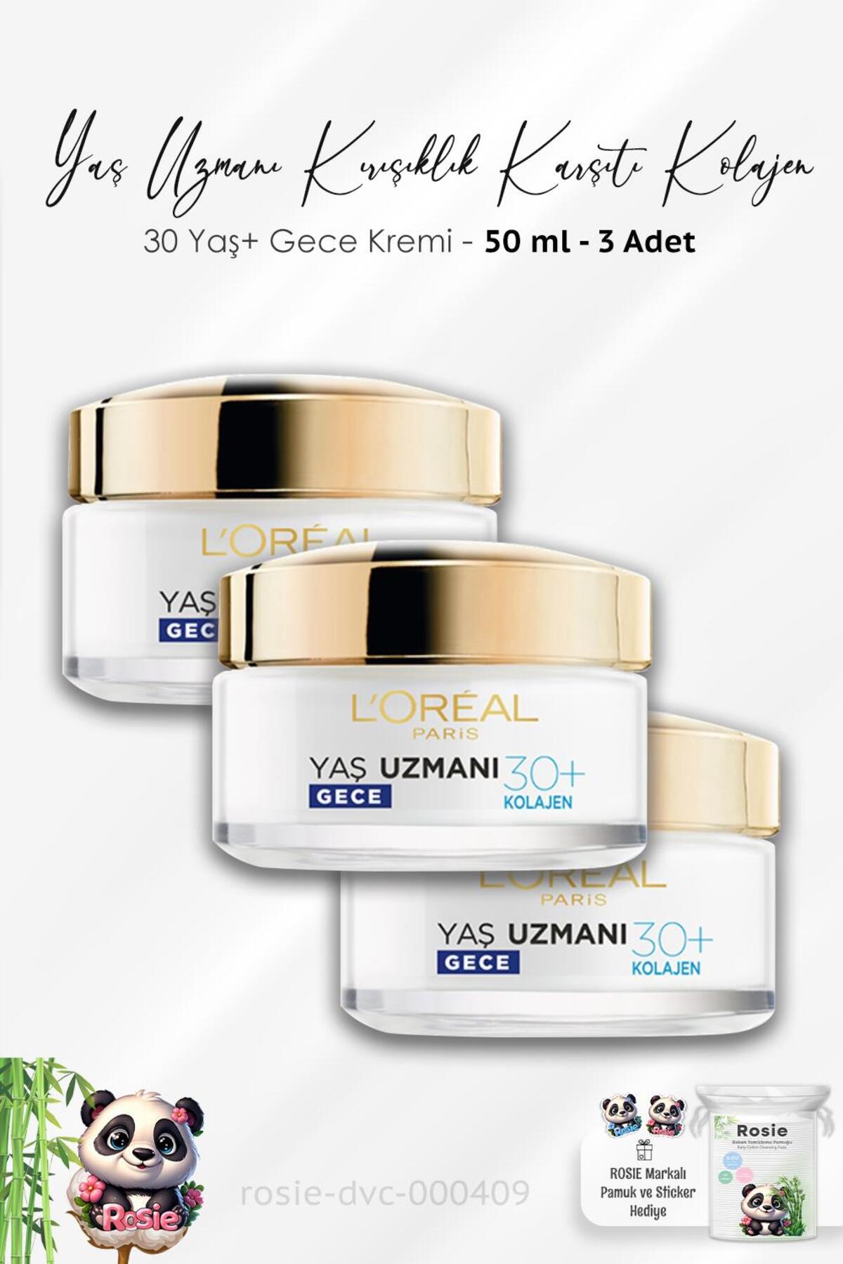 L'Oreal Paris 3 Pieces Loreal Paris Age Expert Anti-Wrinkle Night Cream 30+ Collagen 50 ml and ROSIE
