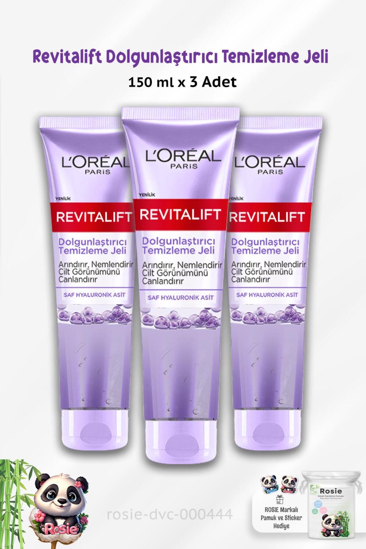 3 Adet Loreal Paris Revitalift Dolgunlastirici Temizleme Jeli 150 ml ve ROSIE,