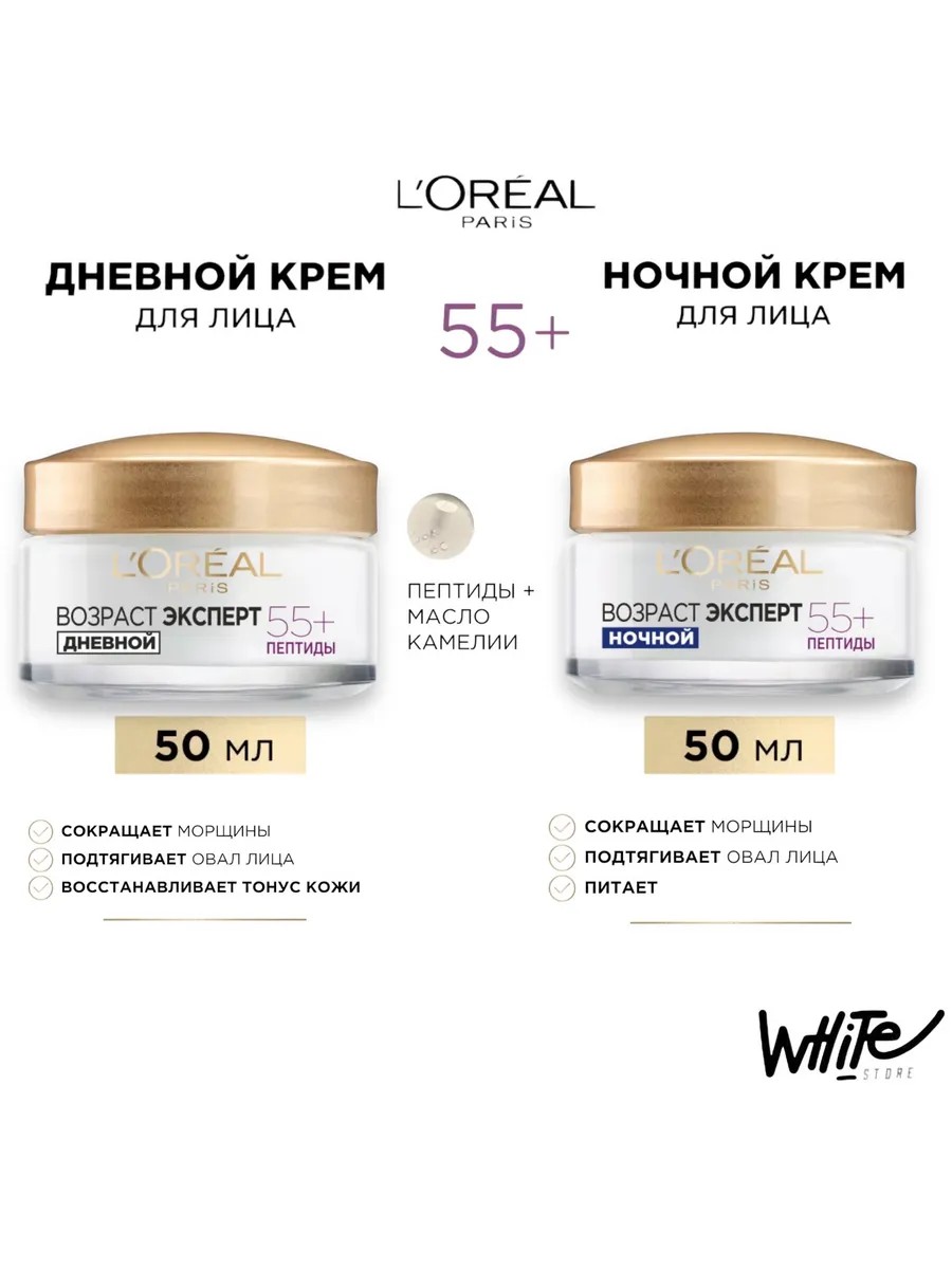 Набор антивозрастных кремов для лица L'Oreal Paris 55+ представляет собой комплексное решение для борьбы с признаками старения кожи. Этот набор включает в себя ночной и дневной кремы, которые предназначены для использования в разное время суток, обеспечивая непрерывное ухода за кожей. Кремы содержат комплекс масел, в том числе масло Камелии, Виталин и Пептиды, которые способствуют восстановлению упругости и укреплению кожи, питанию и устранению возрастных изменений. Благодаря своему универсальному составу, набор подходит для всех типов кожи, включая комбинированную и нормальную. Нанесение кремов утром и вечером поможет вашей коже выглядеть моложе и здоровее.