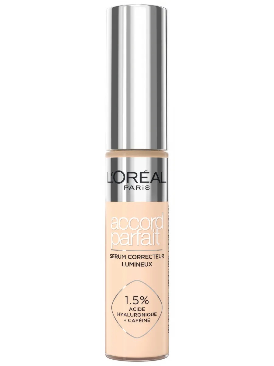 L'Oreal Paris Accord Parfait Concealer-Serum for Face, Shade 1R, 11 ml. The radiant Accord Parfait concealer-serum conceals imperfections like a concealer and cares for them like a serum. The innovative triangular applicator provides even coverage, does not emphasize wrinkles and camouflages dark circles under the eyes. Suitable for spot application. Care ingredients in the composition: 1.5% hyaluronic acid + caffeine nourish and smooth the skin. Medium coverage. Suitable for sensitive skin. Conceals dark circles. Radiant finish. Smoothes and nourishes the skin. Does not emphasize wrinkles. How to use: Using the convenient applicator, apply a small amount of concealer to the desired area and gently blend. Shake before use. Ingredients: AQUA/WATER, ISODODECANE, DIMETHICONE, ALCOHOL DENAT., BUTYLENE GLYCOL, GLYCERIN, TRIMETHYLSILOXYSILICATE, DIPHENYLSILOXY PHENYL TRIMETHICONE, SYNTHETIC FLUORPHLOGOPITE, PEG-10 DIMETHICONE, NIACINAMIDE, SODIUM HYALURONATE, SILICA, DISTEARDIMONIUM HECTORITE, ISOPROPYL LAUROYL SARCOSINATE, DIISOPROPYL SEBACATE, MAGNESIUM SULFATE, DIMETHICONE/VINYL DIMETHICONE CROSSPOLYMER, BIS-PEG/PPG-14/14 DIMETHICONE, DISODIUM STEAROYL GLUTAMATE, PHENOXYETHANOL, PROPYLENE CARBONATE, CAFFEINE, DIPENTAERYTHRITYL TETRAHYDROXYSTEARATE/TETRAISOSTEARATE, SILICA SILYLATE, TOCOPHEROL, ALUMINUM HYDROXIDE, TIN OXIDE, [+/- MAY CONTAIN CI 77891/TITANIUM DIOXIDE, CI 77491, CI 77492, CI 77499/IRON OXIDES, MICA, CI 77163/BISMUTH OXYCHLORIDE]