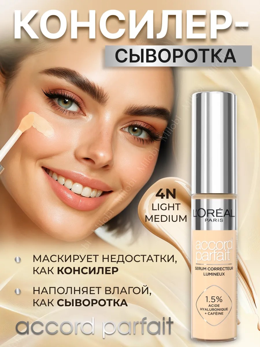Консилер-сыворотка для лица loreal ACCORD PARFAIT заметно выравнивает тон кожи, визуально маскирует несовершенства и скрывает тёмные круги под глазами.