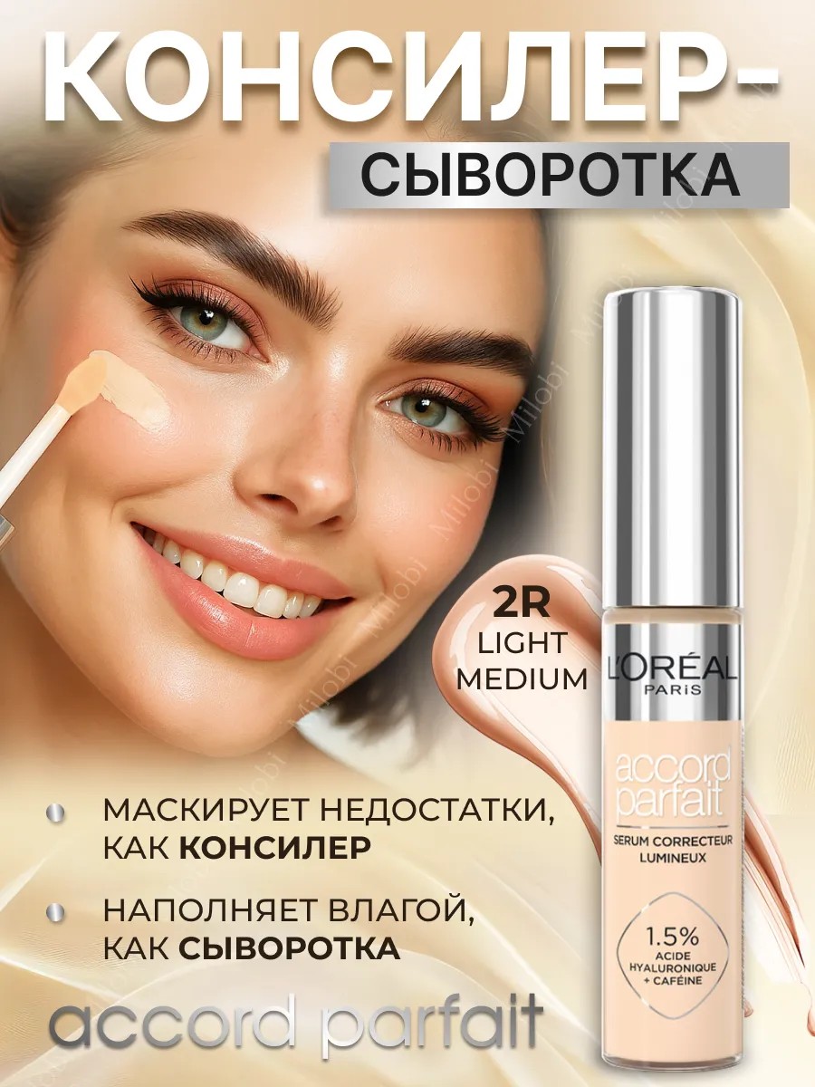 Консилер-сыворотка для лица loreal ACCORD PARFAIT заметно выравнивает тон кожи, визуально маскирует несовершенства и скрывает тёмные круги под глазами.