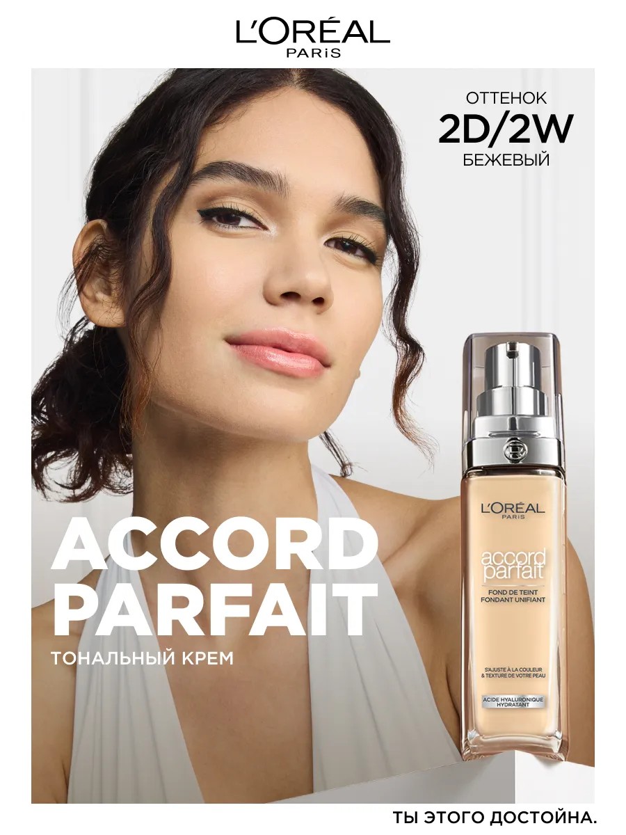 Tональный крем Accord Parfait от L'Oreal Paris выравнивает тон, подстраивается к цвету и текстуре кожи. Заметно преображает кожу за 2 недели применения: кожа более гладкая и сияющая. Ультра-тонкие пигменты подстраиваются под тон и подтон кожи. Формула на 80%, состоящая из увлажняющего крема с гиалуроновой кислотой. 24 часа увлажнения вашей кожи. Естественный финиш, сияющая кожа. SPF 16.