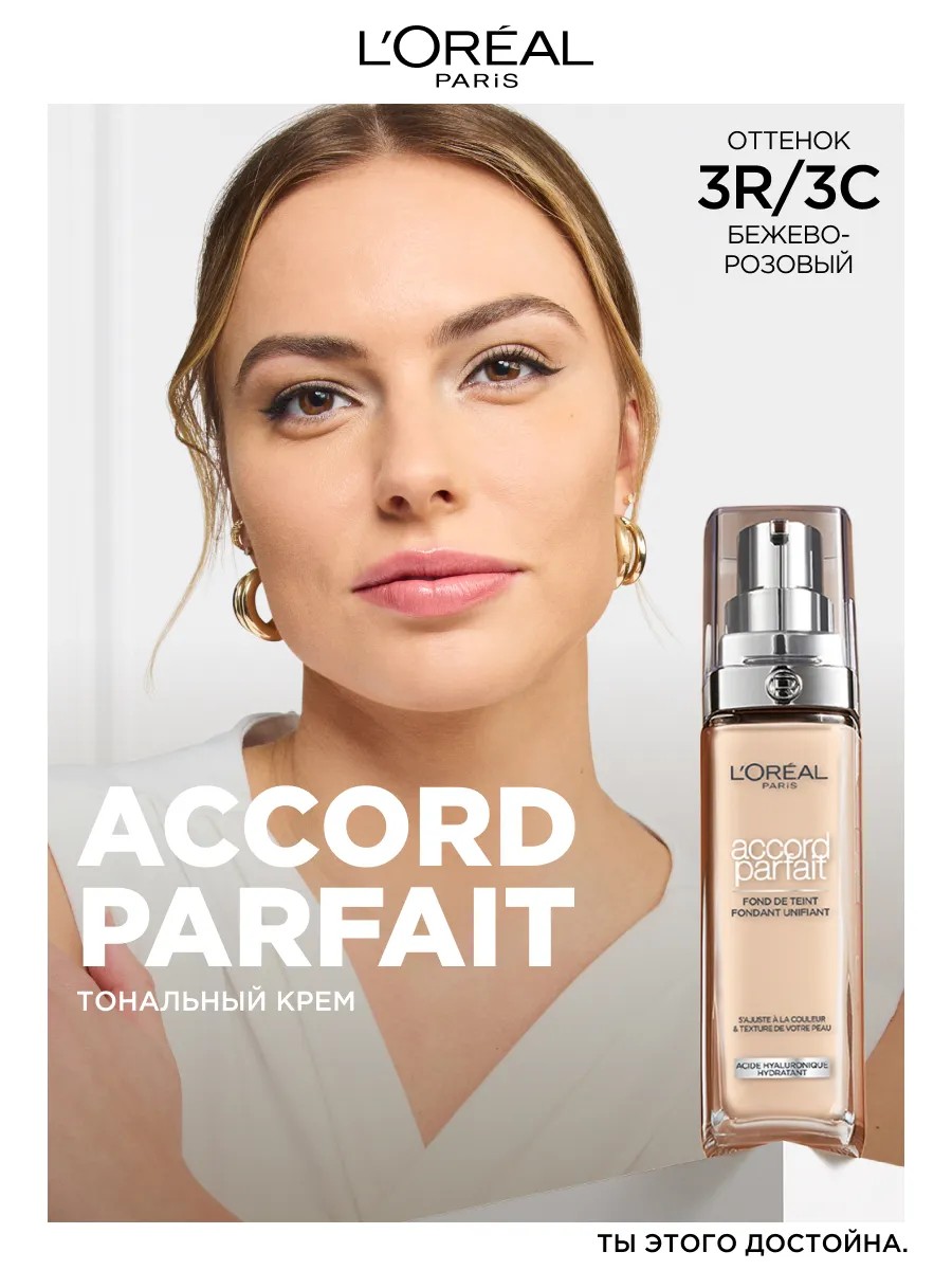 Tональный крем Accord Parfait от L'Oreal Paris выравнивает тон, подстраивается к цвету и текстуре кожи. Заметно преображает кожу за 2 недели применения: кожа более гладкая и сияющая. Ультра-тонкие пигменты подстраиваются под тон и подтон кожи. Формула на 80%, состоящая из увлажняющего крема с гиалуроновой кислотой. 24 часа увлажнения вашей кожи. Естественный финиш, сияющая кожа. SPF 16.