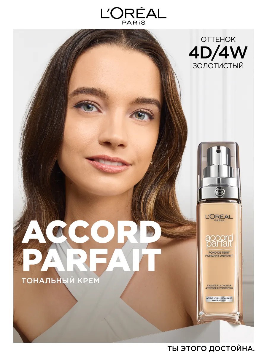 Tональный крем Accord Parfait от L'Oreal Paris выравнивает тон, подстраивается к цвету и текстуре кожи. Заметно преображает кожу за 2 недели применения: кожа более гладкая и сияющая. Ультра-тонкие пигменты подстраиваются под тон и подтон кожи. Формула на 80%, состоящая из увлажняющего крема с гиалуроновой кислотой. 24 часа увлажнения вашей кожи. Естественный финиш, сияющая кожа. SPF 16.