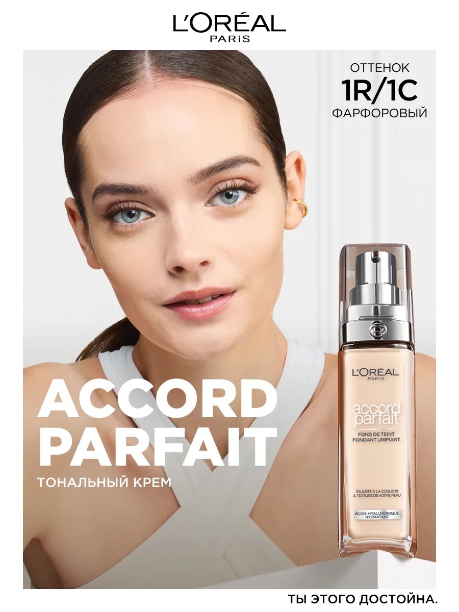 Tональный крем Accord Parfait от L'Oreal Paris выравнивает тон, подстраивается к цвету и текстуре кожи. Заметно преображает кожу за 2 недели применения: кожа более гладкая и сияющая. Ультра-тонкие пигменты подстраиваются под тон и подтон кожи. Формула на 80%, состоящая из увлажняющего крема с гиалуроновой кислотой. 24 часа увлажнения вашей кожи. Естественный финиш, сияющая кожа. SPF 16.