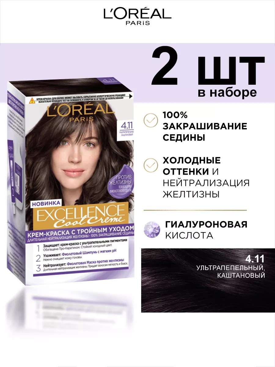 L'OREAL PARIS Крем краска Excellence Cool 4.11 Каштан 2шт