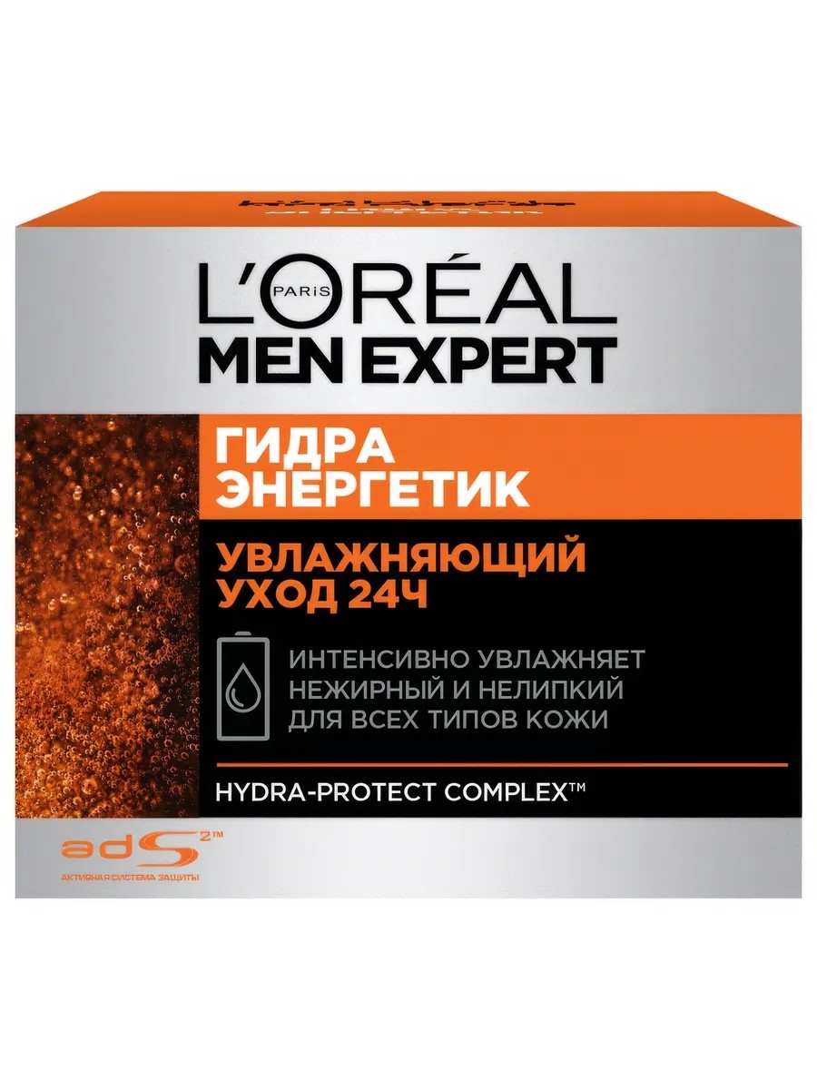 L'Oreal Paris Men Expert Hydra Energizer Facial Cream for Men, for All Skin Types, Moisturizing, 50 ml. Hydra Energizer's 24-hour moisturizing formula provides all-day comfort. It intensely moisturizes for 24 hours, reduces dry skin, and protects against the negative effects of external factors such as wind, pollution, and cold. Directions: Apply daily to cleansed skin with vigorous massaging movements. When used after shaving, it reduces burning sensation and redness. Ingredients: AQUA/WATER, BUTYROSPERMUM PARKII BUTTER/SHEA BUTTER, GLYCERIN, DICAPRYLYL ETHER, ALUMINUM STARCH OCTENYLSUCCINATE, PEG-40 STEARATE, CETYL ALCOHOL, GLYCERYL STEARATE, PANAX GINSENGEXTRACT/PANAX GINSENG ROOT EXTRACT, SORBITAN TRISTEARATE, CAMELLIA SINENSIS EXTRACT/CAMELLIA SINENSIS LEAF EXTRACT, SODIUM HYDROXIDE, AMMONIUM POLYACRYLDIMETHYLTAURAMIDE/AMMONIUM POLYACRYLOYLDIMETHYL TAURATE, PROPYLENE GLYCOL, CAPRYLYL GLYCOL, MENTHOL, ACRYLATES/C10-30 ALKYL ACRYLATE CROSSPOLYMER, PENTAERYTHRITYL TETRA-DI-T-BUTYL HYDROXYHYDROCINNAMATE, METHYLPARABEN, PHENOXYETHANOL, LINALOOL, LIMONENE, PARFUMFRAGRANCE.