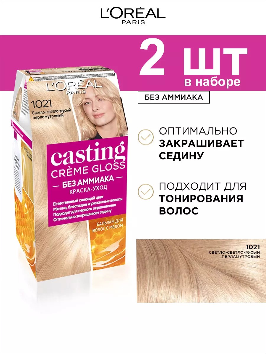L'OREAL PARIS Крем-краска 1021 Светло-светло русый перламутр 2шт