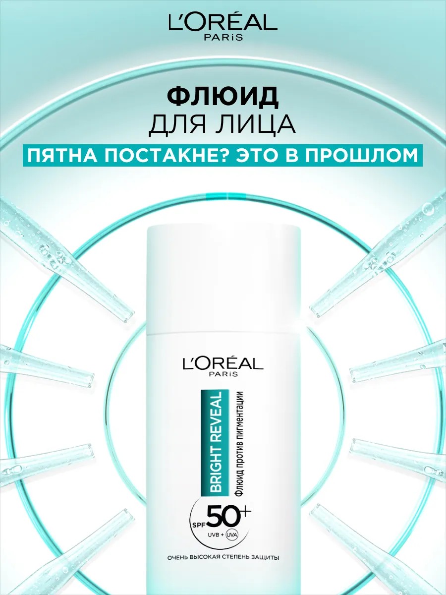Пятна постакне? Пигментация? Теперь это в прошлом! Дневной флюид против пигментации Bright Reveal SPF 50+ от L’Oréal Paris защищает от UV- излучения, предотвращает и заметно сокращает пигментные пятна. Наша * самая высокая степень защиты от uvb и uva -лучей в сочетании с активными ингредиентами. Инновационная формула с [20% UV- Фильтрами] – широкого спектра предотвращает появление пигментных пятен и признаков преждевременного старения. [Ниацинамид] – активный ингредиент выравнивает тон. [lha+ Витамин Е] – эксфолиант в сочетании с антиоксидантом заметно сокращает пигментные пятна. Уже после первого применения кожа заметно более увлажненная и сияющая, через месяц применения пигментные пятна заметно сокращены на -53%, кожа более сияющая +43%*. Крем-флюид не оставляет белых следов на коже, создавая ультра легкое невидимое покрытие. Нелипкая текстура, максимально комфортна для ежедневного использования, подходит для всех типов кожи, в том числе чувствительной.