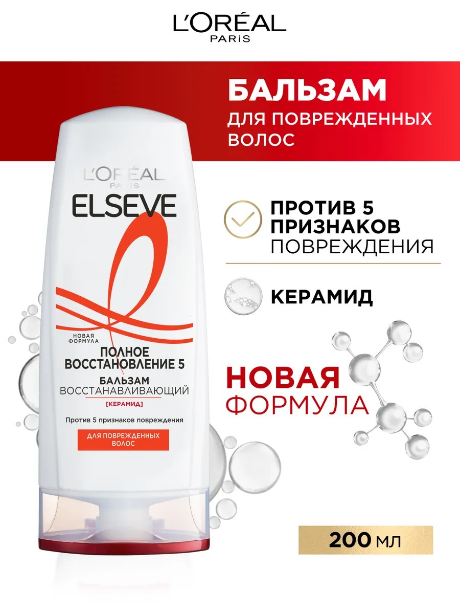 Бальзам способствует интенсивному восстановлению поврежденных волос благодаря формуле, обогащенной 9% восстанавливающим концентратом с кератином xs. Восстанавливающий бальзам мгновенно преображает даже очень поврежденные волосы*, придает гладкость и облегчает расчесывание.1. Восстанавливает структуру волос. 2. Делает волосы прочными. 3. Придает волосам шелковистость и блеск.Совет по применению:Нанесите бальзам на вымытые шампунем влажные волосы лёгкими массажными движениями, распределите его по всей длине волос, а затем тщательно смойте тёплой водой, избегая попадания средства в глаза.С заботой об экологии: наша бутылка сделана из 100% переработанного пластика** и на 100% пригодна для вторичной переработки. Пожалуйста, выключайте воду в душе.* Инструментальный тест после 10 применений шампуня с бальзамом ELSEVE "Полное Восстановление 5".** Исключая крышку и красители.
