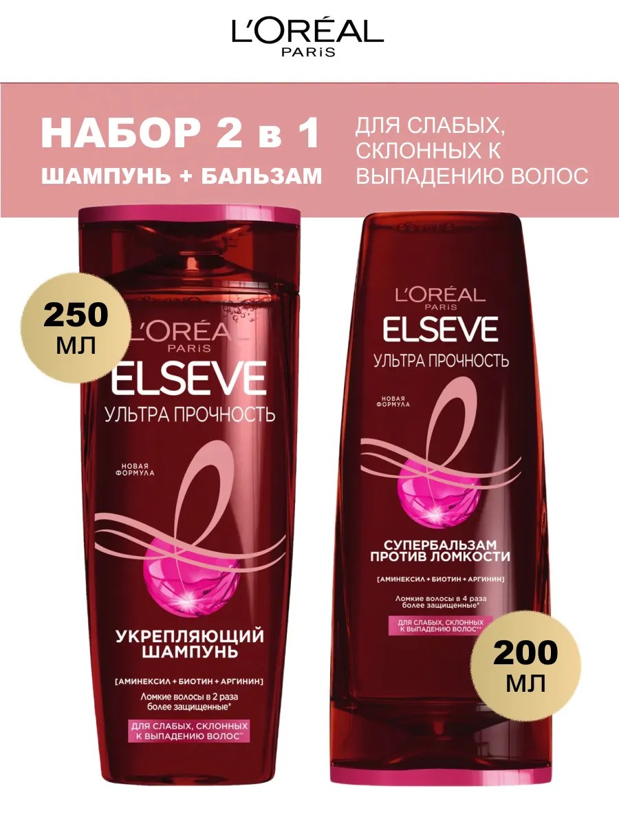 L'OREAL PARIS Набор Elseve Шампунь 250мл и Бальзам 200 мл Ультра прочность