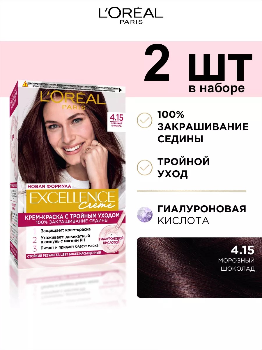 L'OREAL PARIS Крем краска Excellence 4.15 Морозный шоколад 2шт