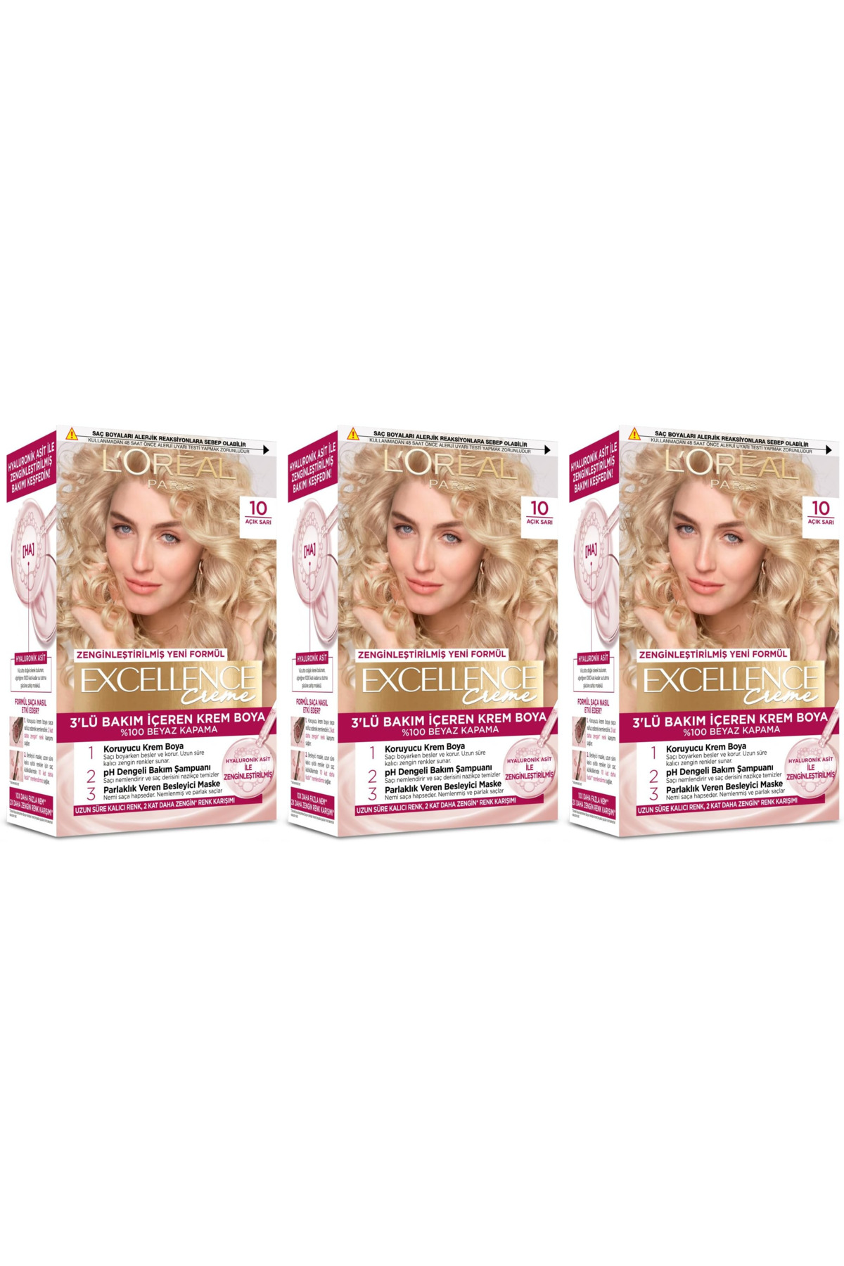 L'Oreal Paris Excellence Hair Dye 10 Light Blonde 3-Piece Set Renewed Packaging