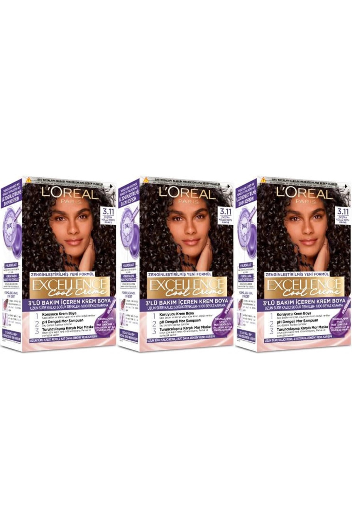 L'Oreal Paris Excellence Hair Dye 3.11 Extra Ash Dark Brown 3-Piece Set