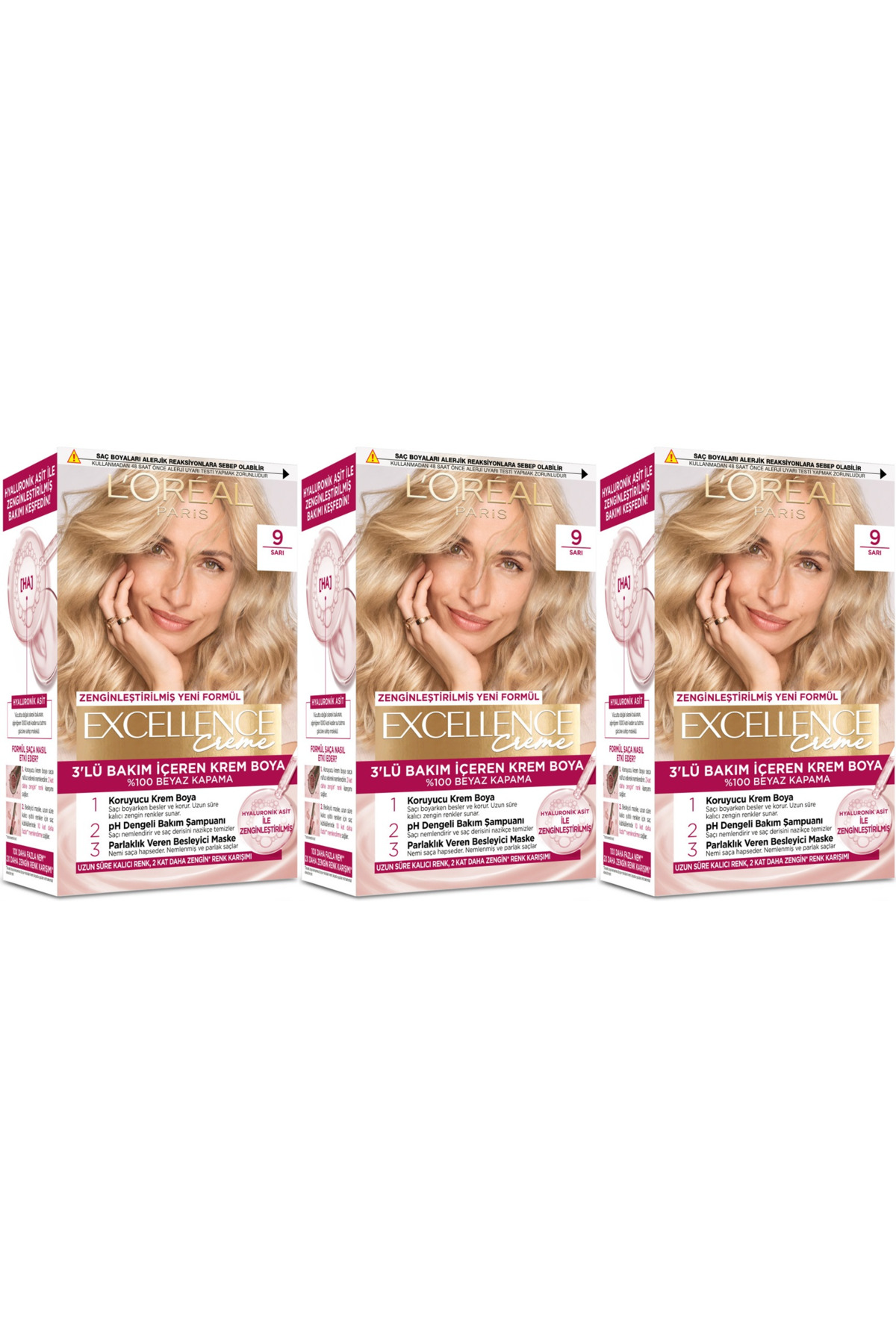 L'Oreal Paris Excellence Hair Dye 9 Blonde 3-Piece Set Renewed Packaging