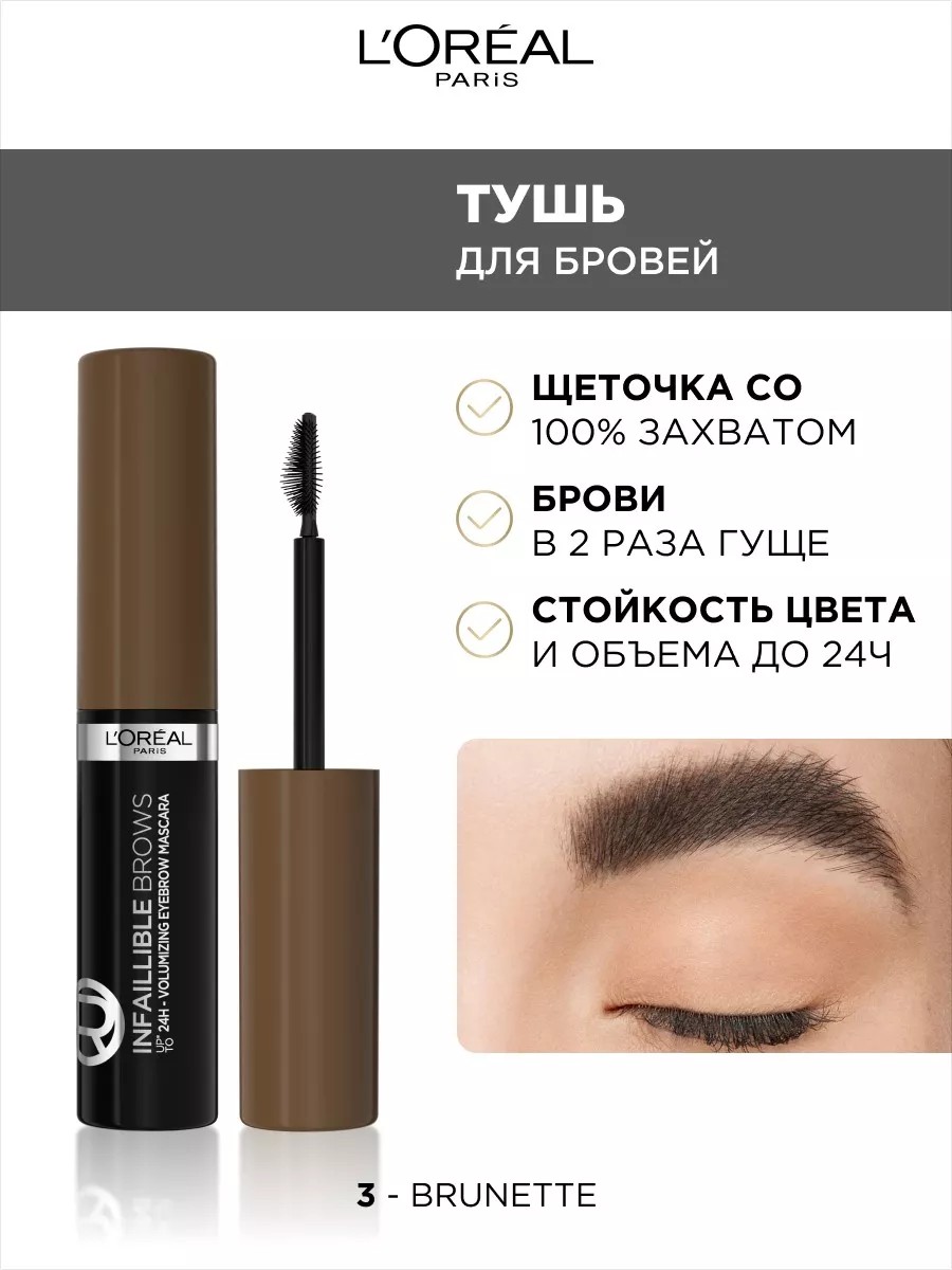 L'Oreal Paris Infaillible Тушь для бровей Brows Volumizing Mascara, тон 3 брюнет / BRUNETTE.