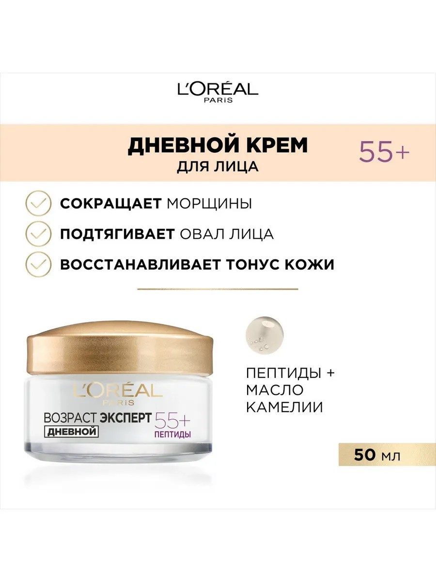 Восстанавливающий крем против морщин Возраст Эксперт 55+ от L'Oreal Paris специально разработан для ухода за кожей женщин старше 55 лет и эффективно минимизирует видимые возрастные изменения. Благодаря пептидам, он стимулирует выработку эластина, что способствует восстановлению упругости и укреплению эпидермиса. Масло камелии насыщает кожу питательными веществами, даря ей невероятную мягкость. Крем активно сокращает морщины, придает четкость овалу лица и восстанавливает тонус кожи. Рекомендуется наносить средство каждое утро на предварительно очищенные лицо и шею. Для лучшего впитывания наносите массирующими круговыми движениями.