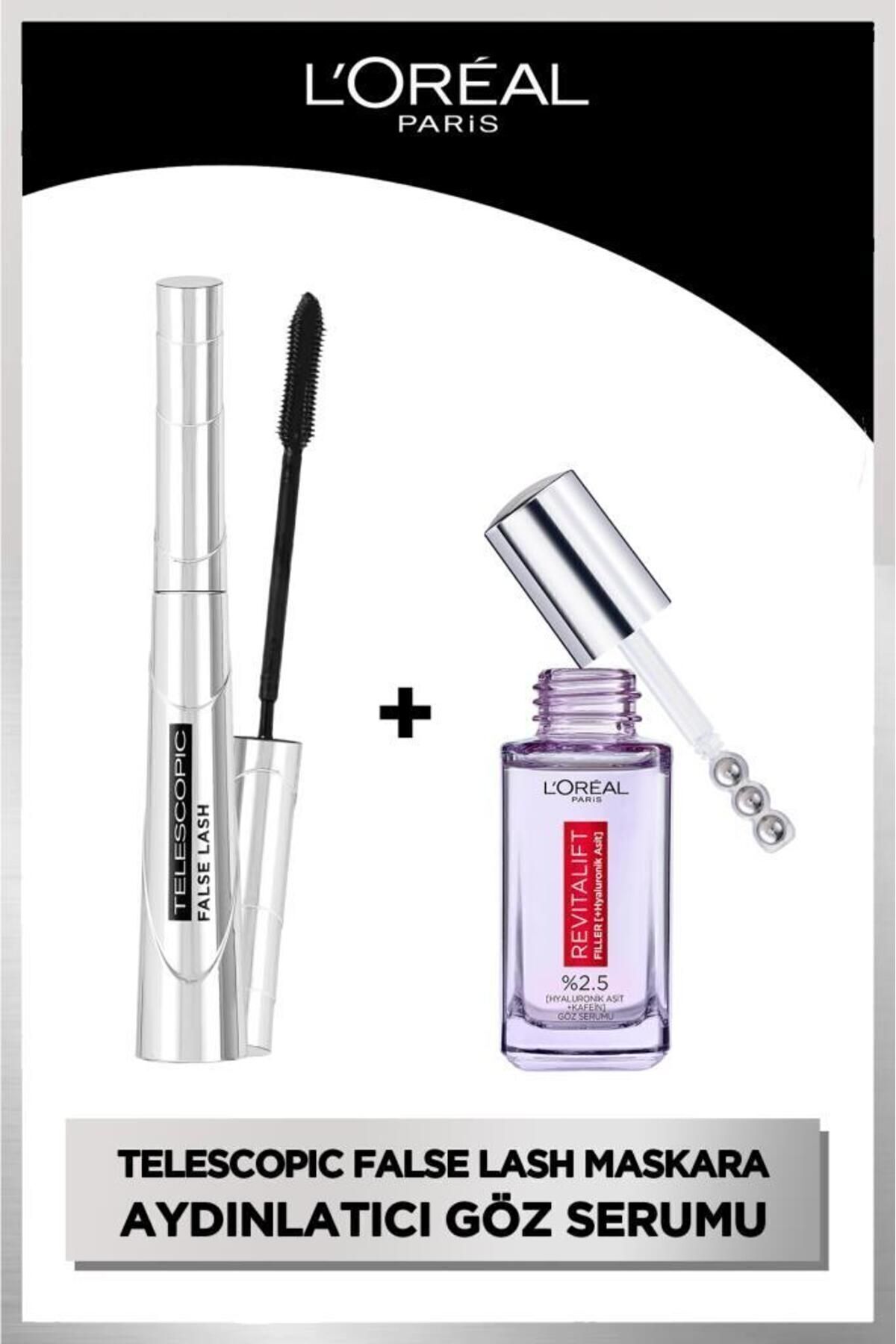 L'Oreal Paris False Lash Telescopic Fiber Mascara & Revitalift Filler Eye Contour Brightening Eye Serum 20ml