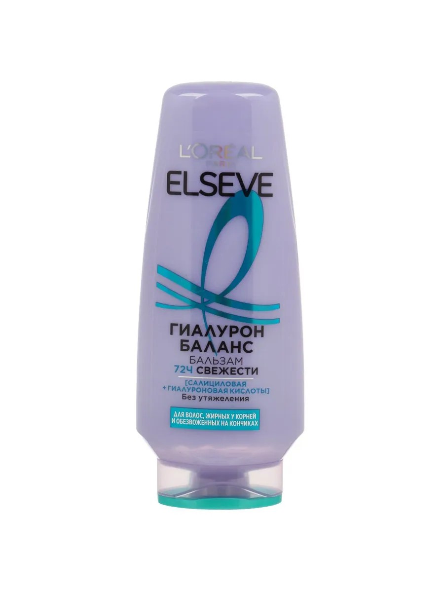 Elseve Hyaluron Balance от L'Oreal Paris – бальзам-кондиционер для жирных у корней прядей, произведённый во Франции. Формула с чистой гиалуроновой кислотой глубоко увлажняет, удерживая воду до 72 часов, одновременно регулирует себум и дарит длительное ощущение свежести без утяжеления. Средство облегчает расчесывание, уменьшает ломкость, делает локоны эластичными и блестящими, придаёт визуальный объём и защищает кончики от сухости.