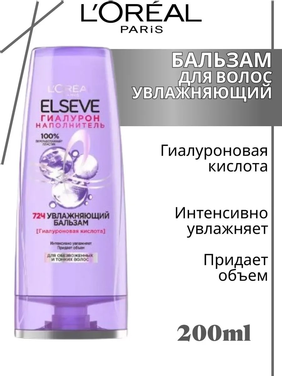 Бальзам увлажняющий ELSEVE Гиалурон наполнитель 72 часа, 200 мл. У Вас обезвоженные и тонкие волосы? Подарите своим волосам интенсивное увлажнение и легкое расчесывание! ELSEVE [Гиалурон] Наполнитель от Лореаль париж мгновенно преображает обезвоженные волосы, наполняя влагой, делает их блестящими, объемными и упругими без утяжеления. Увлажняющий бальзам Эльсев заметно облегчает расчесывание, интенсивно увлажняет на 72 часа, при совместном применении с шампунем придает объем. Волосы в 10 раз более увлажненные. 24 часа упругости. Волосы выглядят более объемными после совместного применения шампуня и бальзама. ДЕЙСТВИЕ ГИАЛУРОНОВОЙ КИСЛОТЫ - Молекула ГИАЛУРОНОВОЙ КИСЛОТЫ способна удержать воды в 1000 раз больше собственного веса. Как своеобразный водный резервуар, она наполняет волосы влагой, делая их плотными и упругими. ПРИМЕНЕНИЕ: После применения шампуня нанесите на влажные волосы, распределяя по всей длине до кончиков. Оставьте на 1 минуту, смойте. При попадании в глаза немедленно и тщательно промойте водой. Пожалуйста, выключайте воду в душе. уплотняют волосы и возвращают им естественный блеск. безсульфатный бальзам-концентрат на основе активных ингредиентов растительного происхождения и комплекса витаминов создан для полноценного ухода за ослабленными волосами в периоды сезонного стресса и при выпадении. Экстракт шалфея ускоряет рост волос, стимулируя волосяные луковицы, предотвращает выпадение. Бальзам-ополаскиватель Эльсев мгновенно устраняет ломкость и признаки повреждений, предотвращает появление секущихся кончиков и дарит волосам гладкость и здоровый блеск. Подходит для окрашенных волос. Для достижения максимального эффекта используйте в сочетании с шампунем, также доступном в большом размере, и маской; дополните уход маслом и спреем для волос из серии Интенсивное Восстановление. увлажняет, смягчает, питает волосы, предотвращает ломкость. Обладает легкой тающей текстурой, не утяжеляет тонкие волосы, позволяет сохранить объем локанов.