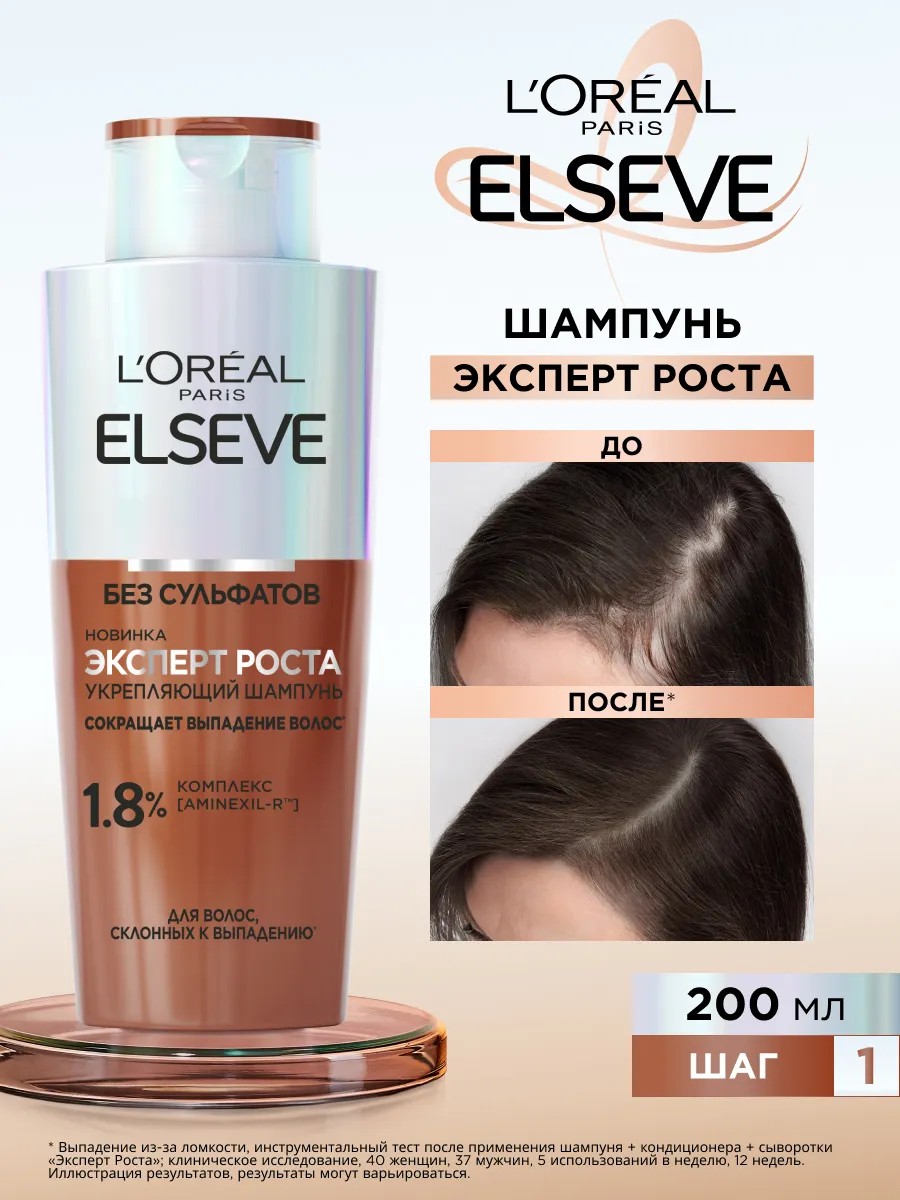 Попробуй новинку от Elseve - Укрепляющий шампунь ‘Эксперт роста’. Эффективная формула, усиленная инновационным комплексом** [Aminexil – Rtm], укрепляет волосы и предотвращает их выпадение*. Клинически протестировано на мужчинах и женщинах. Шампунь для волос подарит приятный аромат свежести из нот имбиря, бергамота, белых цветов, ветивера и кашмерана. Используй всю линейку Elseve ‘Эксперт роста’ для максимального эффекта и уже через 6 недель заметишь результат: волосы выпадают в 10 раз меньше*. Убедись в эффективности!