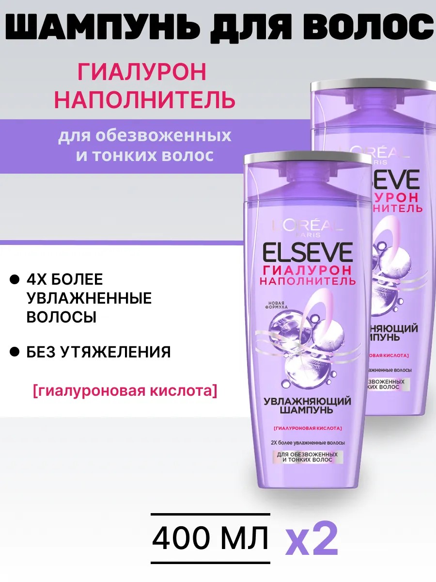 L'OREAL PARIS Шампунь для волос женский Гиалурон Наполнитель 400 мл, 2 шт