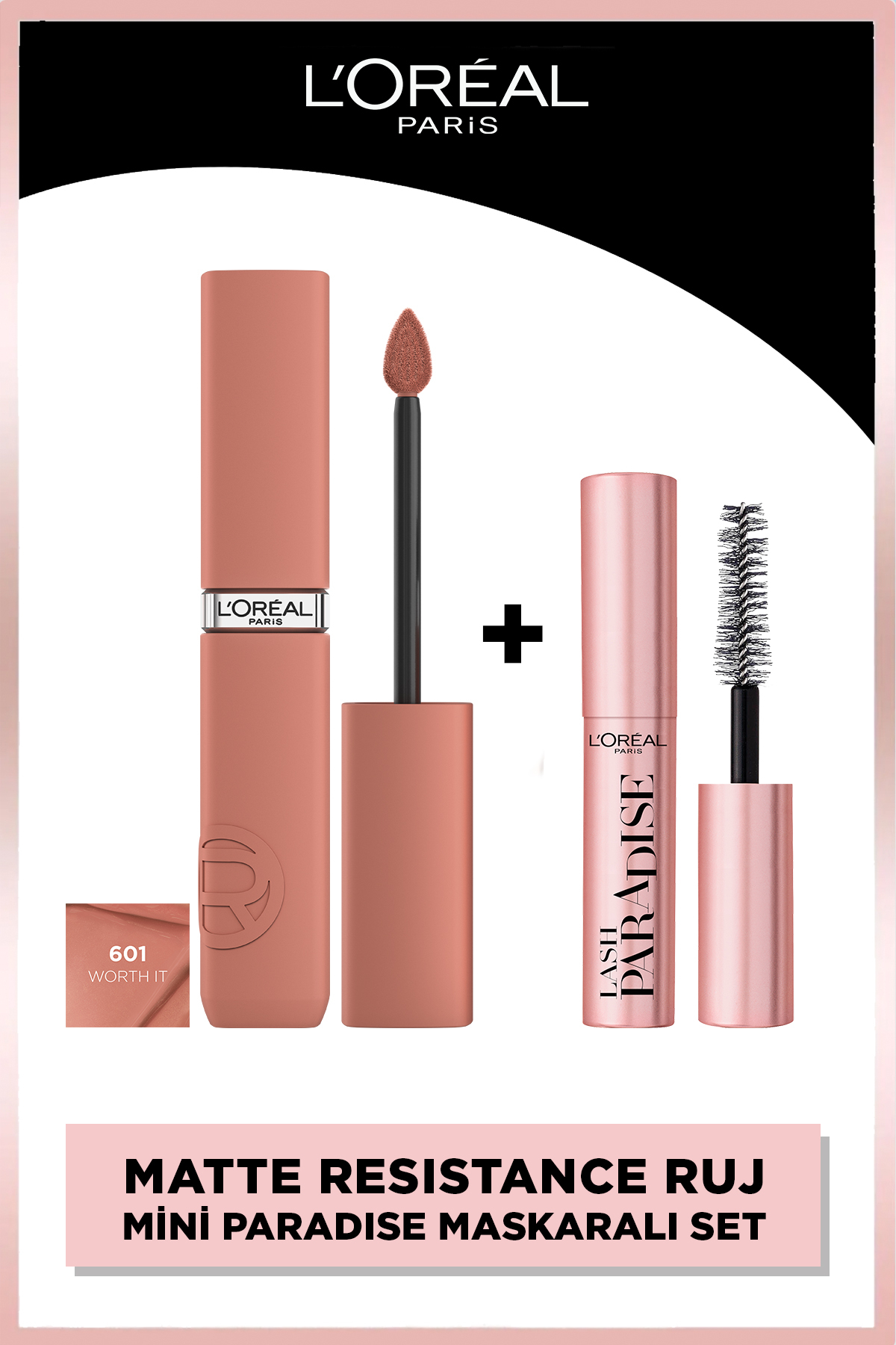 L'Oreal Paris Infaillible Matte Resistance Liquid Matte Lipstick - 601 Worth It & Mini Paradise Mascara 4.7 Ml Makeup Set