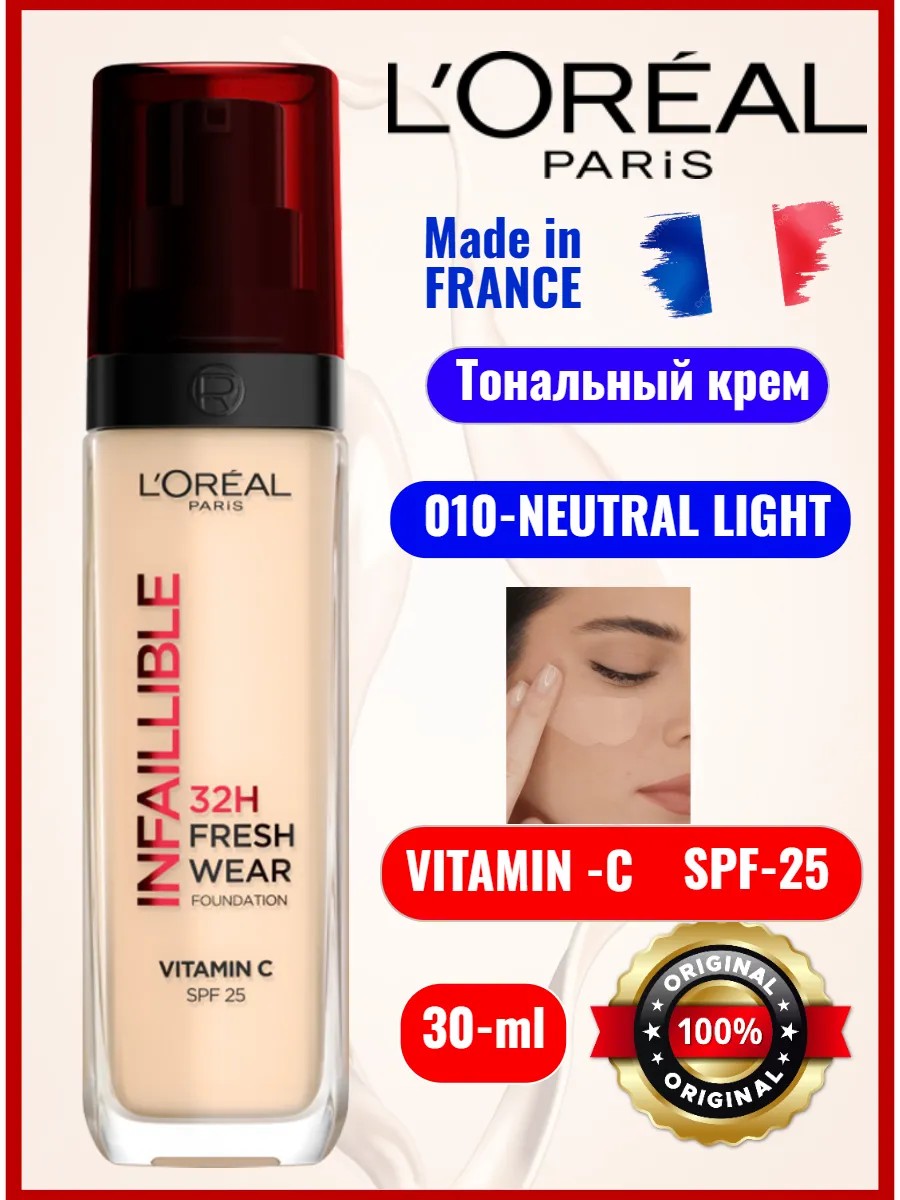 Познакомьтесь с тональным кремом L’Oreal Paris Infallible 32H FreshWear с витамином C и SPF25 — инновационным средством, которое обеспечивает безупречный макияж и ухаживает за кожей. Этот тональный крем для лица сочетает стойкость до 32 часов с легкой текстурой, которая не перегружает кожу, позволяя ей дышать.