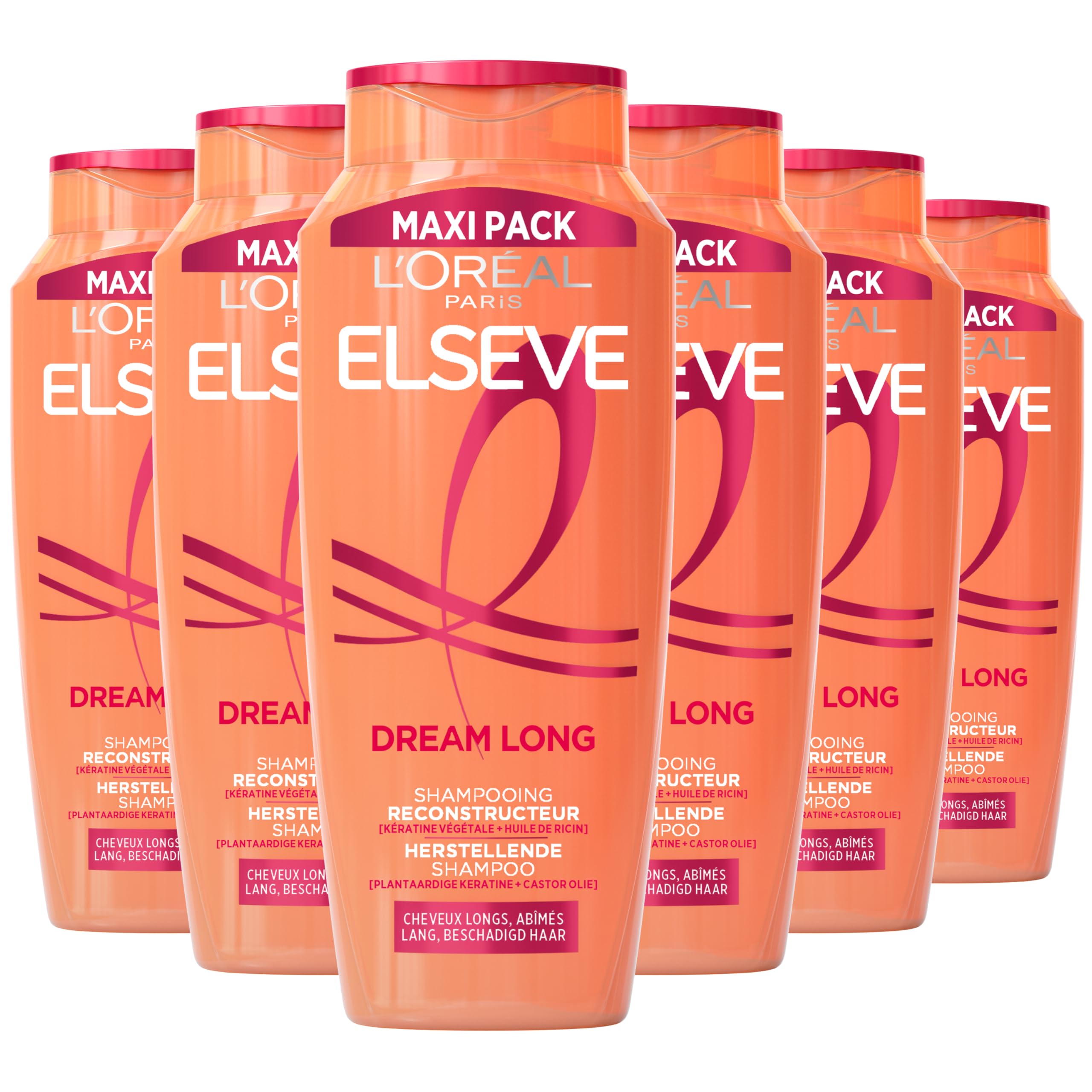 L'Oréal Paris Elseve Dream Long Shampoo is a shampoo specially designed to deeply nourish and repair long, damaged hair from root to tip. The shampoo intensively nourishes hair with high-quality ingredients, including plant-based keratin and castor oil, which repair damaged hair strands deep within the hair fiber. The result: healthier-looking hair with renewed shine. The new sustainable packaging for L'Oréal Paris Elseve Dream Long Shampoo is now available in the standard 250ml size and contains 20 less plastic . L'Oréal Paris Elseve Dream Long Shampoo is enriched with caring ingredients, such as plant-based keratin and castor oil, which help repair long, damaged hair from within. Hair is nourished and cleansed from root to tip, leaving it looking smoother and with a beautiful shine. The new packaging for this shampoo is made from recycled plastic and contains 20 less plastic . Excluding additives, dyes, and labels. Compared to the previous bottle, plastic reduction varies depending on package size. SAFETY WARNING PRECAUTIONS: HAIR DYES CAN CAUSE SEVERE ALLERGIC REACTIONS. • Read and follow instructions. • This product is not intended for use on persons under 16 years of age. • Temporary black henna tattoos may increase the risk of an allergic reaction. •Do not colour your hair if: - you have a rash on your face or a sensitive, irritated or damaged scalp - you have previously had a reaction after colouring your hair - you have previously had a reaction to a temporary black henna tattoo IT IS NECESSARY TO CARRY OUT AN ALLERGY WARNING TEST 48 HOURS BEFORE EACH USE OF THE PRODUCT, EVEN IF YOU HAVE PREVIOUSLY USED A COLOURING PRODUCT. REMEMBER TO BUY THE PRODUCT 48 HOURS IN ADVANCE TO PERFORM THE ALLERGY WARNING TEST. • Keep out of reach of children. • Wear the gloves provided. • Avoid contact with eyes. • In case of contact with eyes, rinse immediately with plenty of water. • Do not use for any purpose other than colouring hair. • Rinse hair thoroughly after the product has left on your hair. Follow the instructions for use.RESULT: Repairs hair and seals split ends. SUITABLE FOR long, damaged hair. And 20 less plastic . NEW shampoo packaging made from recycled plastic. L'ORÉAL PARIS ELSEVE DREAM LONG Shampoo.L'Oréal Paris Elseve Dream Long Shampoo - Voor lang, beschadigd haar - Herstellende shampoo - 6 x 500mlDESCRIPTION DU PRODUIT DESCRIPTION DU PRODUIT L'Oréal Paris Elseve Dream Long Shampoo is een shampoo die speciaal is ontworpen om lang, beschadigd haar van de wortels tot de punten grondig te voeden en te herstellen. De shampoo verzorgt het haar intensief met hoogwaardige ingrediënten, waaronder plantaardige keratine en castorolie die beschadigde haarlengtes tot diep in de haarvezels herstellen. Het resultaat: haar dat gezonder oogt en opnieuw prachtig glanst. De nieuwe duurzame verpakking van L'Oréal Paris Elseve Dream Long Shampoo is nu verkrijgbaar in het standaard 250ml formaat en bevat 20 minder plastic . L'Oréal Paris Elseve Dream Long Shampoo is verrijkt met verzorgende ingrediënten, zoals plantaardige keratine en castorolie, die lang, beschadigd haar van binnenuit helpen te herstellen. Het haar wordt van wortel tot punt gevoed en gereinigd, waardoor het soepeler oogt met een prachtige glans. De nieuwe verpakking van deze shampoo is gemaakt van gerecycled plastic en bevat 20 minder plastic . Met uitzondering van de additieven, kleurstoffen en labels. Ten opzichte van de eerdere fles, plastic reductie varieert afhankelijk van het verpakkingsformaat. AVERTISSEMENT DE SÉCURITÉ VOORZORGSMAATREGELEN HAARKLEURSTOFFEN KUNNEN ERNSTIGE ALLERGISCHE REACTIES VEROORZAKEN. • Lees en volg de instructies. • Dit product is niet bestemd voor gebruik bij personen jonger dan 16 jaar. • Tijdelijke tatoeages met zwarte henna kunnen leiden tot een verhoogd risico op een allergische reactie. •Kleur uw haar niet als: - u last heeft van uitslag in het gezicht of van een gevoelige, geïrriteerde of beschadigde hoofdhuid - u eerder een reactie na een haarkleuring heeft gehad - u in het verleden een reactie heeft gehad na een tijdelijke tatoeage met zwarte henna HET IS NOODZAKELIJK EEN ALLERGIE WAARSCHUWINGSTEST 48 UUR VÓÓR IEDER GEBRUIK VAN HET PRODUCT UIT TE VOEREN, ZELFS INDIEN U AL EERDER EEN KLEURPRODUCT HEEFT GEBRUIKT. DENK ERAAN HET PRODUCT 48 UUR VAN TE VOREN TE KOPEN OM DE ALLERGIE WAARSCHUWINGSTEST UIT TE KUNNEN VOEREN. • Buiten bereik van kinderen houden. • Bijgevoegde handschoenen dragen. • Contact van het product met de ogen vermijden. • Bij contact van het product met de ogen onmiddellijk met overvloedig water spoelen • Niet gebruiken voor een ander doel dan het kleuren van haar. • Spoel het haar na de inwerktijd van het product goed uit. Volg de gebruiksaanwijzing.RESULTAAT: herstelt het haar en verzegelt gespleten punten. GESCHIKT VOOR lang, beschadigd haar. en 20 minder plastic . NIEUWE shampooverpakking van gerecycled plastic. L'ORÉAL PARIS ELSEVE DREAM LONG Shampoo.