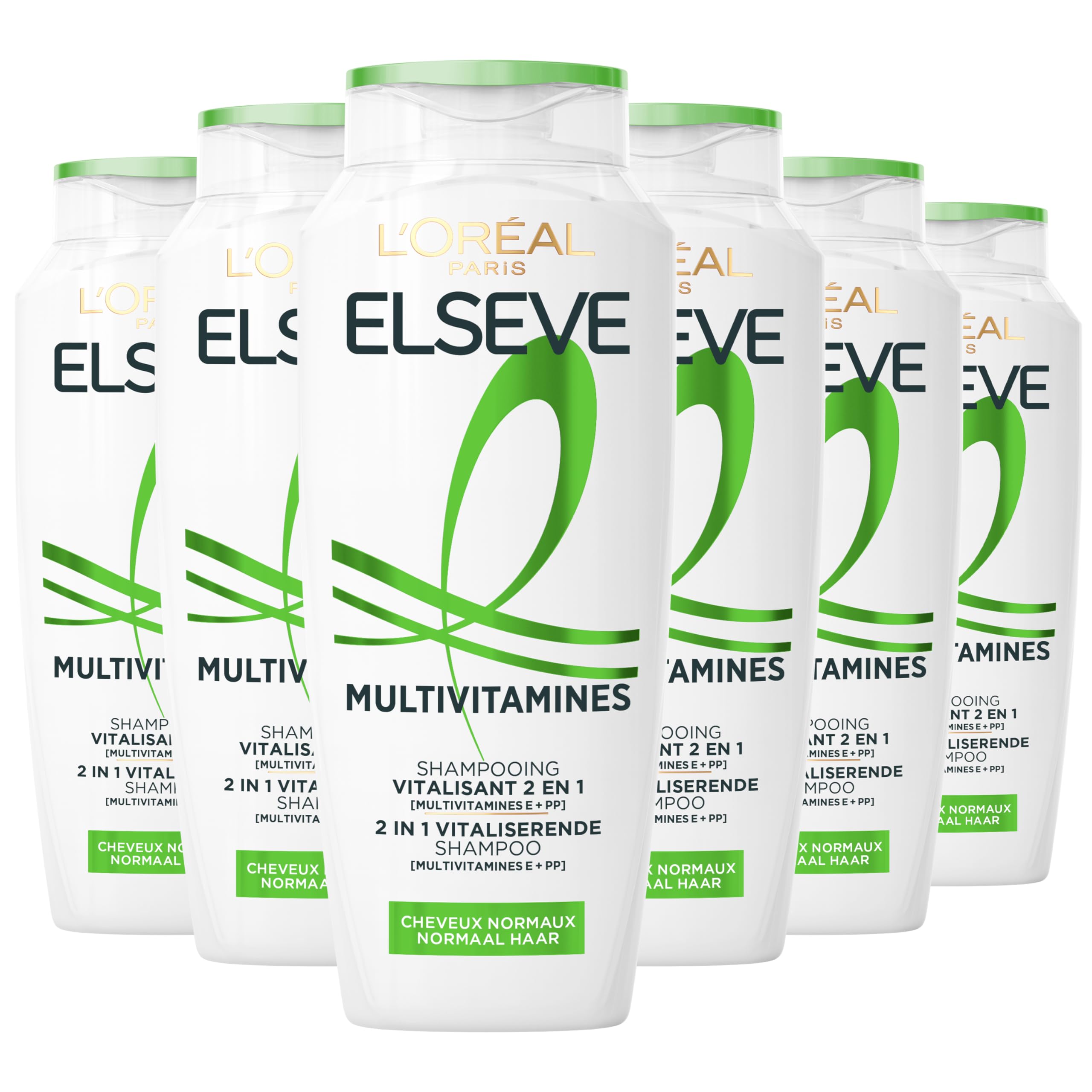 L'Oreal Paris L'Or al Paris Elseve Multivitamin 2 in 1 Shampoo - Vitalizing 2 in 1 Shampoo for Normal Hair - With Multivitamin E + PP - 6 x 300ML