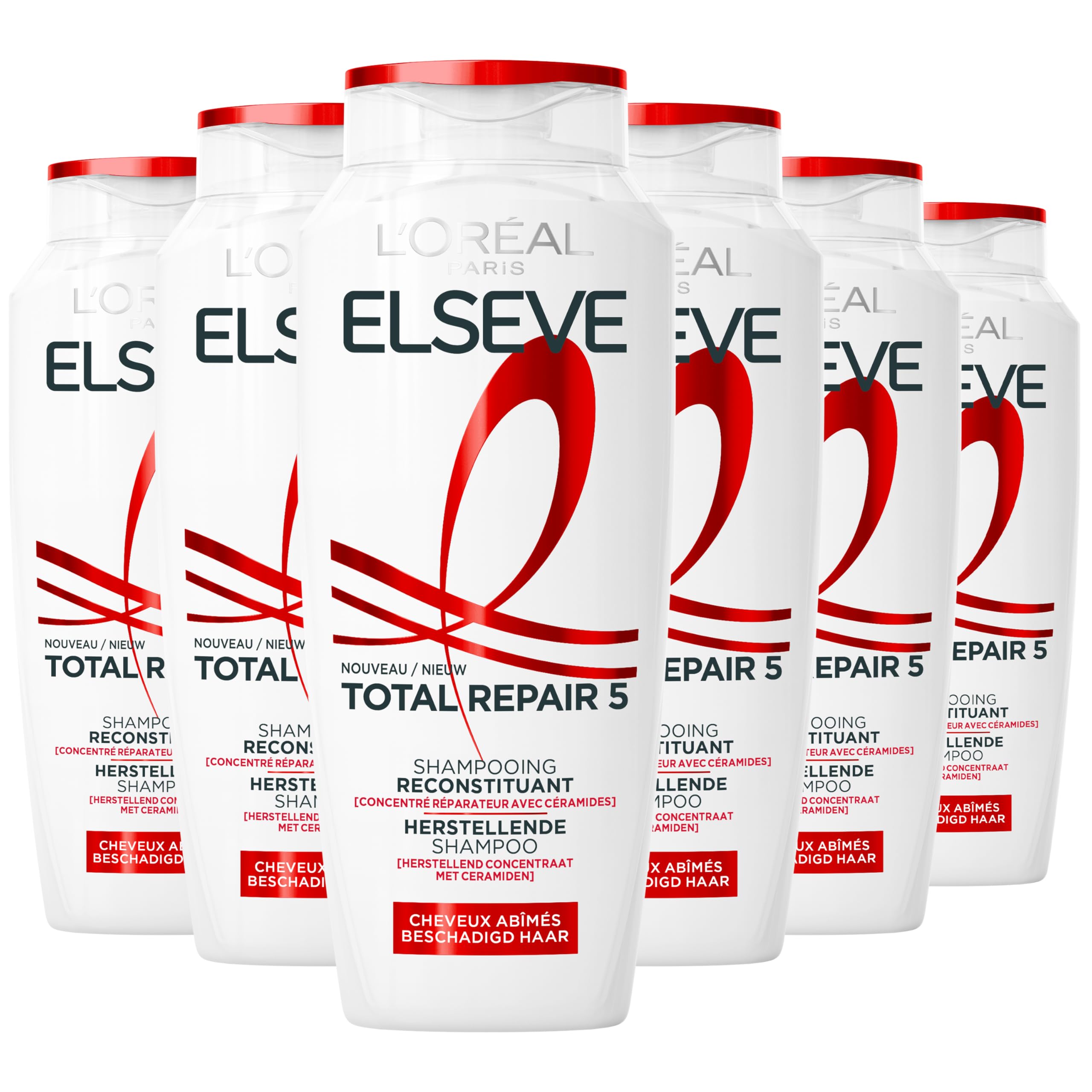 L'Oréal Paris Elseve Total Repair 5 Shampoo - Voor beschadigd haar - Herstellend concentraat met ceramiden - 6 x 300ml