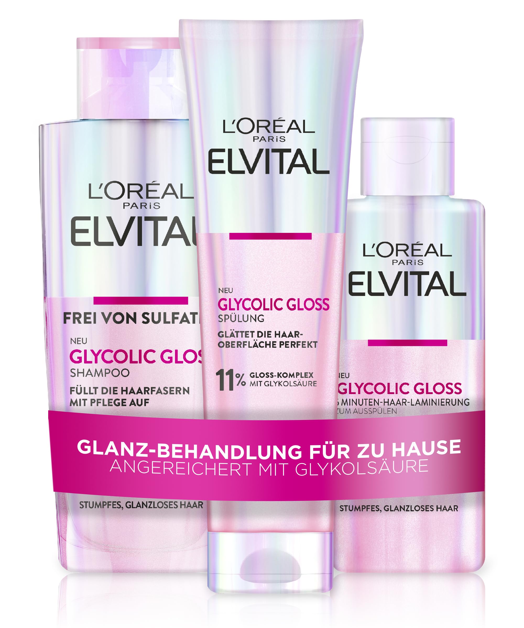 Our first at-home glossing treatment. Shiny hair is synonymous with healthy hair that perfectly reflects light thanks to its mirror-like smooth surface. Hair damage irritates the cuticle, making the hair fiber brittle, rough, and dull, and preventing it from reflecting light. Our first at-home glossing treatment with glycolic acid consists of shampoo, conditioner, and a 5-minute hair lamination treatment. It regenerates the hair fiber, improves hair quality, and seals in shine. INGREDIENTS To verify the composition of a particular product, always refer to the ingredient list on the product. INSTRUCTIONS Step 1: Glycolic Gloss Shampoo: Apply to wet hair, massage, and rinse. Then, use Glycolic Gloss Conditioner and leave on for 5 minutes. Step 2: After shampooing, apply GLYCOLIC GLOSS to the lengths and ends of your hair before laminating for 5 minutes. Keep out of reach of children. Step 3: Hair smoothing: Transformative glossing at home. Smooths the cuticle and seals the hair with an even shine. Apply generously to damp hair, leave on for 5 minutes, and rinse thoroughly. SAFETY WARNING Avoid contact with eyes. In case of contact with eyes, rinse immediately and thoroughly. See morePackage contents: 3 bottles of Elvital Glycolic Gloss (1 x 200ml bottle of 5-minute gloss), 1 x 200ml shampoo, 1 x 150ml conditioner. Glycolic acid gloss complex for home use, ideal for a nourishing glossing treatment. Directions: 1. Apply the shampoo to wet hair, massage, and rinse. Distribute the conditioner through the lengths and ends. Apply the glossing treatment, leave on, and rinse. Result: Healthy hair, even shine thanks to hair sealing, cuticle smoothing, reconstruction of the hair fiber from within, and nourishing of the hair fiber. A complete hair care routine with shampoo, glossing, and conditioner to seal the hair and improve hair quality.L'Oréal Paris Elvital Glycolic Gloss Lot de 3 flacons de shampooing, après-shampoing, après-shampoing, 5 minutes pour cheveux ternes, routine de soin pour des cheveux sains et brillantsDESCRIPTION DU PRODUIT DESCRIPTION DU PRODUIT Notre premier Glossing pour la maison Les cheveux brillants sont synonymes de cheveux sains qui reflètent parfaitement la lumière grâce à sa surface lisse miroir. Les dommages causés aux cheveux irritent la cuticule et rendent la fibre capillaire cassante, rugueuse et terne et ne peut plus refléter la lumière. Notre 1ère Soin brillance à la maison avec [acide glycolique] se compose de shampooing, d'après-shampoing et de 5 minutes de lamination capillaire. Régénère la fibre capillaire, améliore la qualité des cheveux et scelle les cheveux avec brillance INGRÉDIENTS Pour vérifier la composition d'un produit particulier, consultez toujours la liste des ingrédients figurant sur le produit. MODE D'EMPLOI Étape 1 Glycolic Gloss Shampooing : appliquer sur cheveux mouillés, masser et rincer. Ensuite, utilisez un après-shampoing GLYCOLIC GLOSS et un GLYCOLIC GLOSS pendant 5 minutes. Étape 2 : après le shampooing GLYCOLIC GLOSS et répartir avant 5 minutes de lamination des cheveux sur les longueurs et les pointes. Conserver hors de portée des enfants. Étape 3 : lissage des cheveux : glossing transformant à la maison. Lisse la cuticule et scelle les cheveux avec une brillance uniforme. Appliquer généreusement sur cheveux humides, laisser agir 5 minutes et rincer abondamment. AVERTISSEMENT DE SÉCURITÉ Éviter tout contact avec les yeux. En cas de contact avec les yeux, rincer immédiatement et abondamment Voir plusContenu de la livraison : lot de 3 flacons de vernis Elvital Glycolic Gloss (1 flacon de 200 ml de vernis 5 minutes), 1 shampoing de 200 ml, 1 après-shampoing de 150 ml. Complexe gloss à l'acide glycolique pour une utilisation à la maison, combinaison idéale comme service nourrissant glossing. Mode d'emploi : 1. Appliquer le shampooing sur cheveux mouillés, masser et rincer. Répartissez l'après-shampooing en longueurs et pointes. Appliquer la plastification, laisser agir et rincer. Résultat : cheveux sains, brillance uniforme grâce à l'étanchéité des cheveux, lissage des cuticules, reconstruction de la fibre capillaire de l'intérieur et remplissage de la fibre capillaire avec soin. Routine de soin avec shampooing, lamination et après-shampoing pour sceller les cheveux et améliorer la qualité des cheveux.