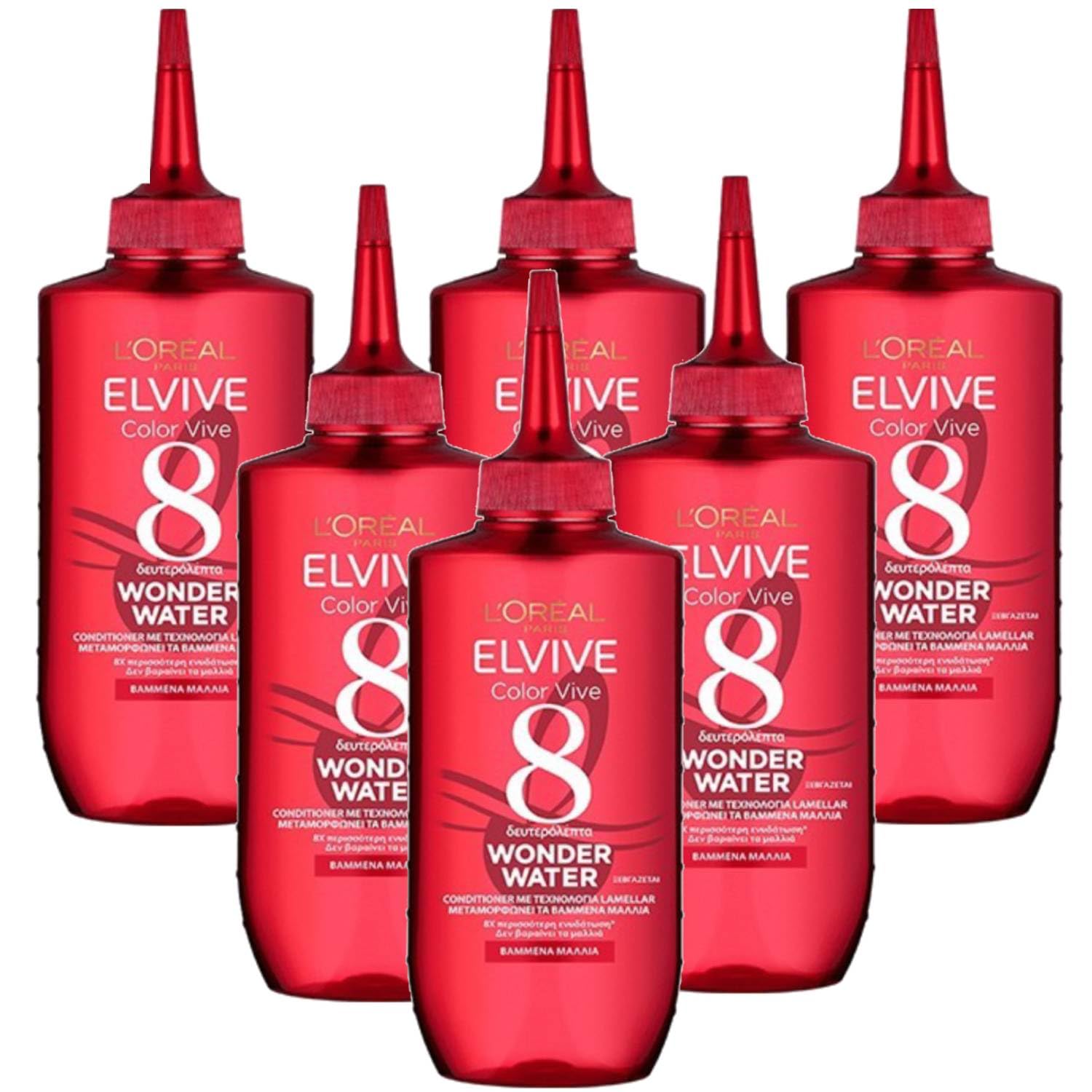 L'Oréal Paris Wonder Water is an innovative treatment with lamellar technology, designed for color-treated and sensitized hair. This instant-action liquid balm transforms hair in just 8 seconds, providing shine, softness, and lightness without weighing it down. Key features: Advanced lamellar technology: forms a thin layer over damaged areas, repairing and smoothing the hair fiber. Silicone-free formula: respects the natural structure of the hair, preventing residue buildup. Enriched with vitamin E and hydrolyzed wheat proteins: nourishes and strengthens the hair fiber while protecting color. Suitable for all types of color-treated hair: prolongs color intensity and shine. How to use: After shampooing, apply Wonder Water to the lengths of your hair. Gently massage for 8 seconds. Rinse thoroughly. Follow with your usual conditioner or mask if desired. Size: 200 ml INGREDIENTS Hydrolyzed wheat protein, arginine PCA, vitamin E, sodium acetylated hyaluronic acid. SAFETY WARNING For external use only. See moreConvenient 200ml size: perfect for home use in your weekly routine or after coloring. Targeted hydration and detangling: works where you need it, leaving hair softer, nourished, and more manageable from the first application. Lightweight, silicone-free formula: won't weigh hair down, ideal for frequent use and for those with delicate or sensitive skin. Long-lasting color protection: designed for color-treated or dyed hair, helps maintain color vibrancy and intensity for longer.L'Oréal Paris Elvive Wonder Water Baume Lamellaire pour Cheveux Colorés Traitement Liquide Brillance Instantanée 200 ml (6 Unités) 200 ml (Confezione da 1)DESCRIPTION DU PRODUIT DESCRIPTION DU PRODUIT Le Wonder Water de L'Oréal Paris est un traitement innovant à la technologie lamellaire, conçu pour les cheveux colorés et sensibilisés. Ce baume liquide à action immédiate transforme la chevelure en seulement 8 secondes, donnant brillance, douceur et légèreté sans alourdir. Caractéristiques principales : technologie lamellaire avancée : forme une fine couche sur les zones endommagées, réparant et lissant la fibre capillaire. Formule sans silicone : respecte la structure naturelle du cheveu, évitant l'accumulation de résidus. Enrichi en vitamine E et protéines hydrolysées de blé : nourrit et renforce la fibre capillaire, tout en protégeant la couleur. Convient à tous les types de cheveux colorés : prolongeant l'intensité et la brillance de la couleur. Mode d'utilisation : après avoir lavé les cheveux avec le shampooing, appliquez Wonder Water sur les longueurs. Masser doucement pendant 8 secondes. Rincer abondamment. Procéder avec le baume ou le masque habituel si vous le souhaitez. Format : 200 ml INGRÉDIENTS roteines hydrolysées de blé, arginine PCA, vitamine E, acide hyaluronique acétylé sodique. AVERTISSEMENT DE SÉCURITÉ Usage extérieur uniquement. Voir plusFormat pratique de 200 ml : parfait pour un usage domestique dans la routine hebdomadaire ou post-coloration. Hydratation ciblée et démêlante : agit là où vous en avez besoin, ce qui rend les cheveux plus doux, nourris et faciles à coiffer dès la première application. Formule légère et sans silicone : n'alourdit pas les cheveux, idéale également pour un usage fréquent et pour les personnes ayant une peau délicate ou sensible. Protection de la couleur prolongée : conçu pour les cheveux colorés ou colorés, aide à maintenir la vivacité et l'intensité de la couleur plus longtemps.