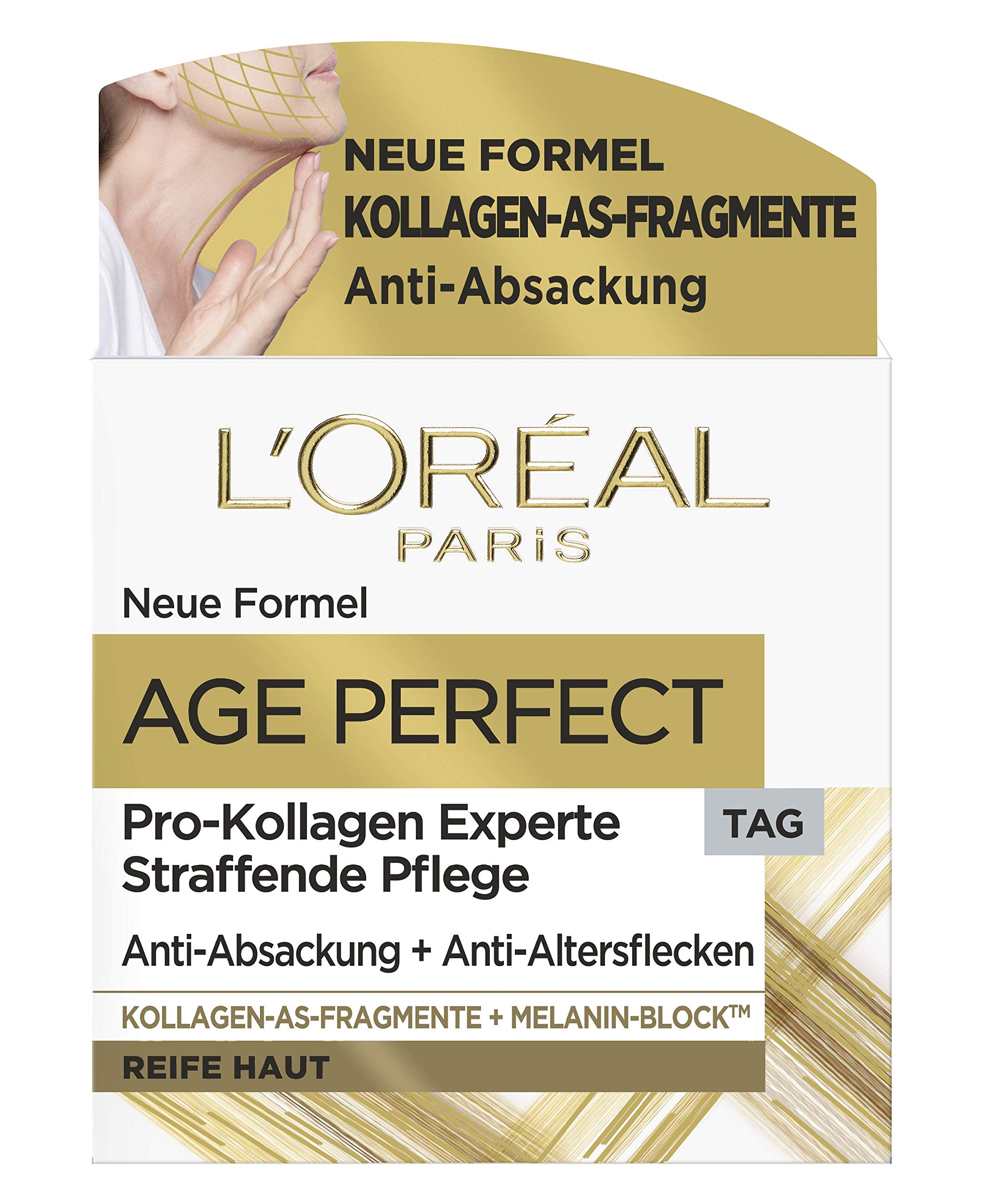 From the age of 50, skin becomes less hydrated and the body's collagen production slows down. The skin can no longer be adequately supported, it loses its firmness, and age spots may appear. Age Perfect Pro Collagen Expert Day Cream, with the effective power of collagen amino acid fragments, combats sagging skin and stimulates the skin's supporting fibers for increased firmness. The melanin blocker reduces age spots. This anti-aging treatment is suitable for all skin types: the product's compatibility has been tested on dry, sensitive, and combination skin. For over 30 years, L'Oréal Paris has been committed to providing alternative testing methods for cosmetic products for a world without animal testing. INGREDIENTS 909224 11 - Ingredients: aqua water • caprylic triglyceride • cyclohexasiloxane • glycerin • cetyl alcohol • glyceryl stearate • niacinamide • myriride. MYRIST STYLE. ATE • HYDROLYZED SOY PROTEIN • PEG-40 STEARATE • LIMNANTHES ALBA SEED OIL MEADOWFOAM SEED OIL • HYDROXYETHYLPIPERAZINE ETHANE SULFONIC ACID • OCTYLDODECANOL • ACETYL TETRATRAL PEPTIDE 9 • Calcium pantethines sulfonates • CAPRYLOYL SALICYLIC ACID • DISODIUM EDTA • HYDROXYPALMITOYL SPHINGANINE • PALMITOYL TETRAPEPTIDE-7 • PALMITOYL TRIPEPTIDE-1 • ACAC. RYLAMIDE SODIUM ACRYLOYLDIMETHYLTAURATE COPOLYMER • ACRYLONITRILE METHYL METHACRYLATE VINYLIDENE CHLORIDE COPOLYMER • BUTYCOL • CAPRYLYL GLYCOL • CARBOMER • CI 77491. IRON OXYDY CI 77891 TITANIUM DIOXIDE • ISOBUTANE • ISOHEXADECANE • MICA • GLYCOL PENTYLENE • POLYSORBATE 20 • POLYSORBATE 80 • SODIUM LACTATE • SORBITAN OLEATE • Sorbits. In Tristearate • Synthetic Fluorphlogopite • Tin Oxides • Alpha-Isomethyl Ion • Alcohol Gasoline • Benzoate • Citronellol • Coumarin • Geraniol • Limonene • Linalool. CI 1599. 85 YELLOW 6 • PHENOXYETHANOL • PARFUM FRAGRANCE (F.I.L. B260460 1). DIRECTIONS FOR USE Apply the firming treatment daily in the morning with circular motions to a cleansed face. See morePackage contents: 1 L'Oréal Paris Age Perfect Anti-Aging Moisturizing Day Cream with Collagen, 50ml. Formula composed of collagen amino acid fragments with a fortifying and supportive effect for mature skin, protecting melanin to combat age spots. Directions: Apply daily in the morning to a cleansed face, neck, and décolleté, including the eye contour area. Results: Skin becomes more elastic and radiant day after day, firmness is restored, and facial contours appear firmer and more defined after 4 weeks. This firming and moisturizing anti-aging day cream stimulates supporting fibers and helps prevent age spots. Suitable for all skin types.L'Oréal Paris Soin de jour raffermissant, soin hydratant anti-âge contre les taches de vieillesse, pour peaux matures, avec fragments de collagène AS, 50 mlDESCRIPTION DU PRODUIT DESCRIPTION DU PRODUIT À partir de 50 ans, la peau est moins hydratée et la production de collagène de l'organisme est ralentie. La peau ne peut plus être suffisamment soutenue, elle perd sa fermeté et des taches de vieillesse peuvent apparaître. Le soin de jour Age Perfect Pro Collagène Expert avec la puissance efficace des fragments d'acides aminés de collagène agit contre l'affaissement de la peau et stimule les fibres de soutien de la peau pour plus de fermeté. Le bloc de mélanine réduit les taches de vieillesse. Le soin anti-âge convient à tous les types de peau : la compatibilité du produit est testée sur les peaux sèches, sensibles et mixtes. Depuis plus de 30 ans, L'Oréal Paris s'engage à fournir des méthodes de test alternatives de produits cosmétiques pour un monde sans expérimentation animale. INGRÉDIENTS 909224 11 - Ingrédients : aqua eau • caprylique triglycéride • cyclohexasiloxane • glycérine • alcool de cètyl • stéarate de glyceryl • niacinamide • myriride. STYL MYRISTE. ATE • HYDROLYZED SOY PROTEIN • PEG-40 STEARATE • LIMNANTHES ALBA SEED OIL MEADOWFOAM SEED OIL • HYDROXYETHYLPIPERAZINE ETHANE SULFONIC ACID • OCTYLDODECANOL • ACETYL TETRATRAL PEPTIDE 9 • Calcium pantéthines sulfonates • CAPRYLOYL SALICYLIC ACID • DISODIUM EDTA • HYDROXYPALMITOYL SPHINGANINE • PALMITOYL TETRAPEPTIDE-7 • PALMITOYL TRIPEPTIDE-1 • ACAC. RYLAMIDE SODIUM ACRYLOYLDIMETHYLTAURATE COPOLYMER • ACRYLONITRILE METHYL METHACRYLATE VINYLIDENE CHLORIDE COPOLYMER • BUTYCOL • CAPRYLYL GLYCOL • CARBOMER • CI 77491. IRON OXYDY CI 77891 DIOXIDE DE TITANIUM • ISOBUTANE • ISOHEXADECANE • MICA • GLYCOL PENTYLENE • POLYSORBATE 20 • POLYSORBATE 80 • SODIUM LACTATE • SORBITAN OLEATE • Sorbits. En tristéarate • Fluorphlogopite synthétique • Oxydes de Tin • Ion d'alpha-isométhyle • Alcool essence • Benzoate • Citronellol • Coumarine • Géraniol • Limonène • Linalool. CI 1599. 85 YELLOW 6 • PHENOXYETHANOL • PARFUM FRAGRANCE (F.I.L. B260460 1). MODE D'EMPLOI Appliquer quotidiennement le matin le soin raffermissant avec des mouvements circulaires sur le visage nettoyé. Voir plusContenu de l'emballage : 1 crème de jour hydratante anti-âge L'Oréal Paris Age Perfect, au collagène 50 ml. Formule composée de fragments d'acide aminé de collagène avec effet fortifiant et effet de soutien pour les peaux matures, protection de la mélanine pour lutter contre les taches de vieillesse. Utilisation : appliquer tous les jours le matin sur le visage, le cou et le décolleté nettoyés, découpe du contour des yeux. Résultat : une peau plus élastique et plus éclatante jour après jour, maintien restauré, contours du visage plus fermes et plus fermes après 4 semaines. Crème de jour raffermissante et hydratante anti-âge pour stimuler les fibres de soutien et prévenir les taches de vieillesse, convient à tous les types de peau.