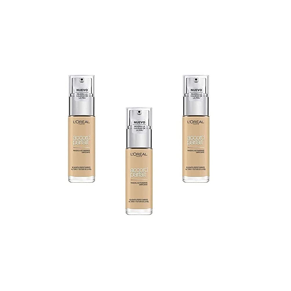 L'Oréal Paris Fond de Teint Fluide Accord Parfait - 2.D Amande Doré (Golden Almond), Lot de 3 (3 x 30 ml)