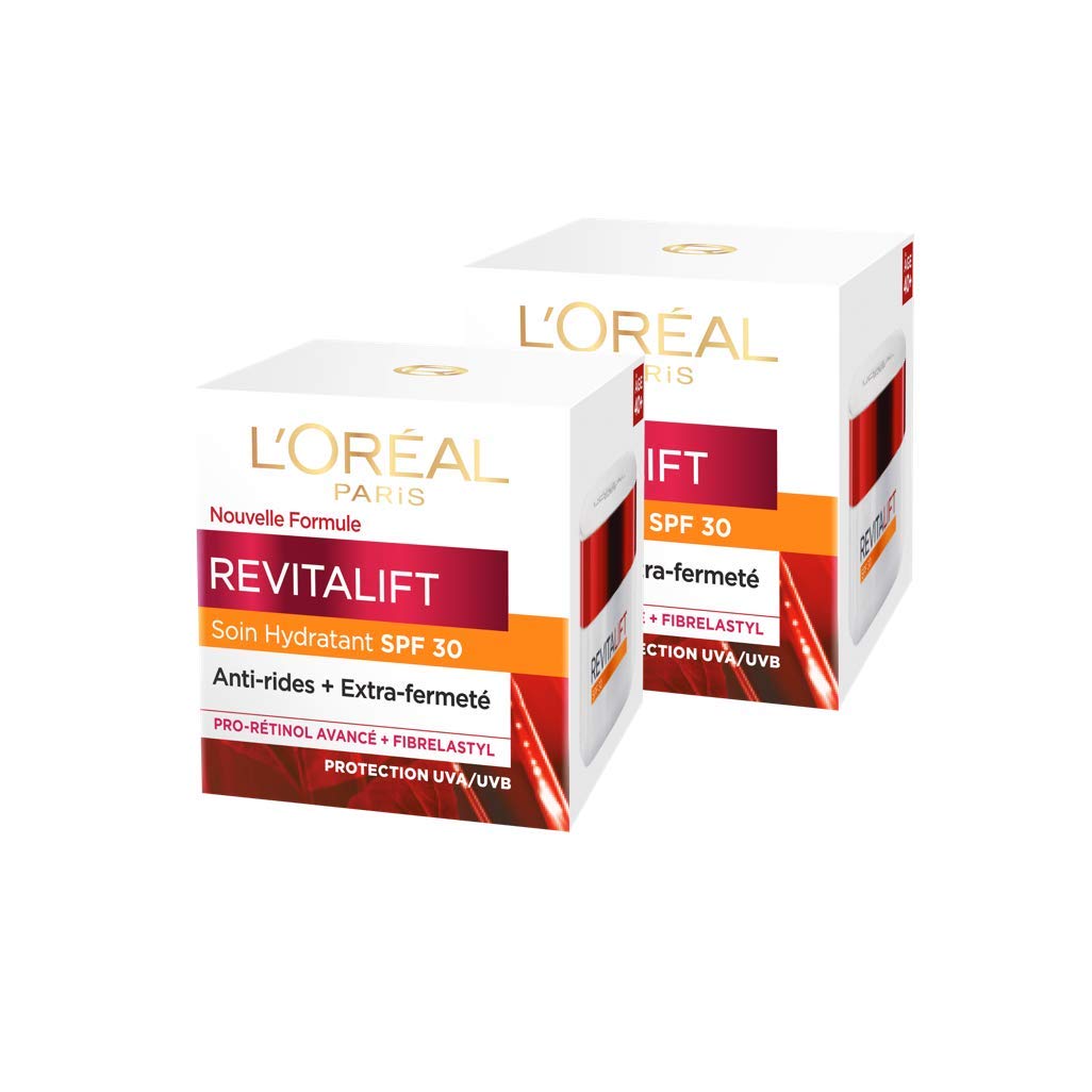 L'Oréal Paris Revitalift Soin de Jour Hydratant Protection Solaire SPF 30 50 ml - Lot de 2 Soin Hydratant FPS 30 - Pack de 2
