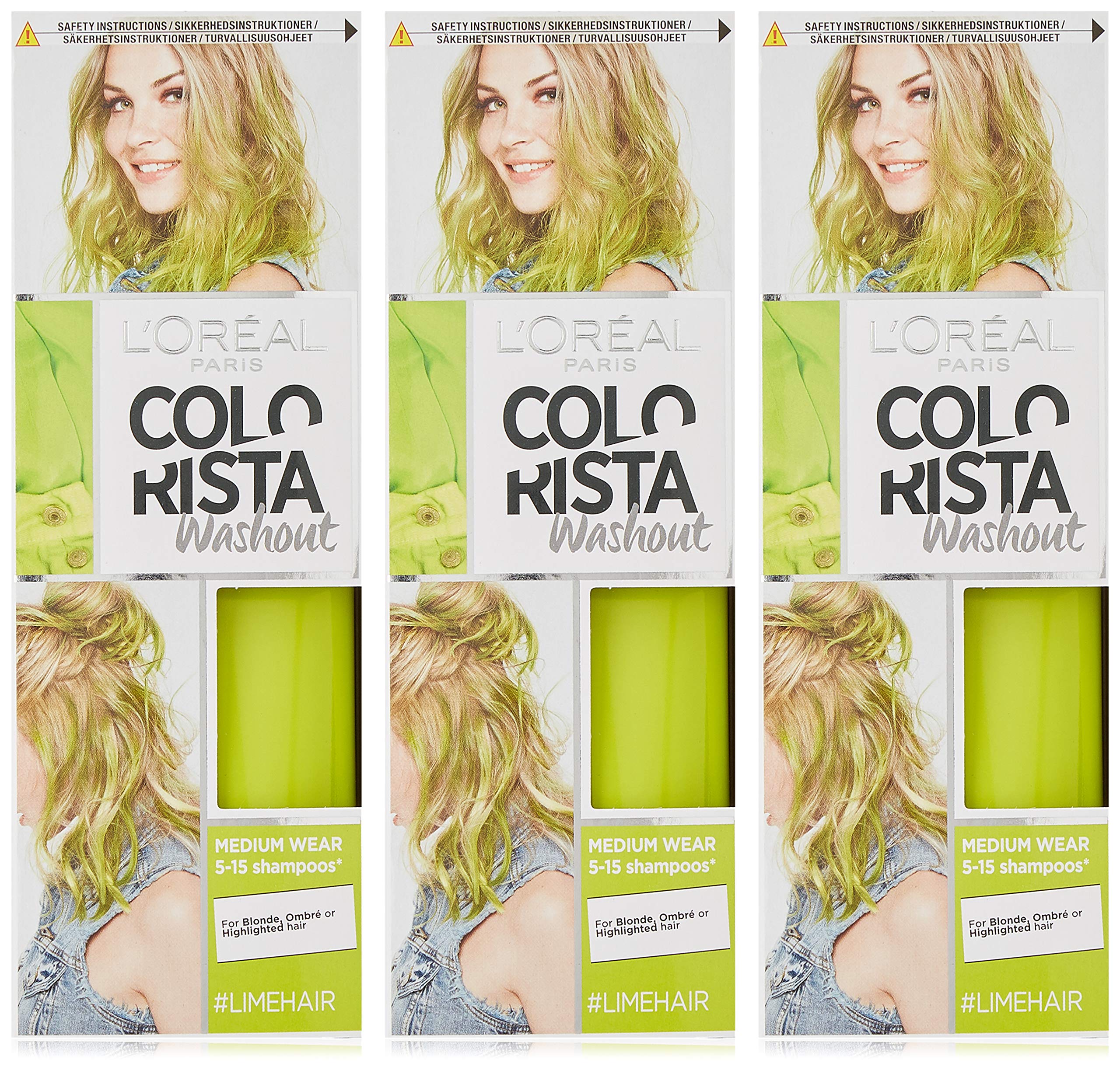 L'Oréal Paris Colorista Washout is a semi-permanent hair color packed into a hair mask base. It gradually fades over 1 to 2 weeks so you can change your hair color whenever you want. Based on chroma-cream technology in a conditioner-based hair mask, it gently colors your hair while caring for its health. It washes out gradually, shampoo after shampoo. Note: Pastel shades are for blonde or dark hair. Vibrant shades are for all hair types, but may last longer on blonde or dark hair. INGREDIENTS 1216008, Aqua Water, Cetearyl Alcohol, Behentrimonium Chloride, Amodimethicone, Cetyl Alcohol, HC Blue No. 15, C12-15 Alkyl Benzoate, Guar Hydroxypropyltrimonium Chloride, Hydroxyethylcellulose, Sodium Hydroxide, Trideceth-6, Chlorhexidine Digluconate, Fumaric Acid, Isopropyl Alcohol, Basic Red 51, Citric Acid, Cetrimonium Chloride, (F.I.L. C210993 1) DIRECTIONS Apply the product to dry hair, leave on, then rinse. See moreIdeal for festive hairstyles and summer looks. Includes 2 pairs of gloves for applying the product. This set contains one 80ml wash tube and 11 seamless shades, from soft pastels to intense hues. Hair color that washes out in 1 to 2 weeks. L'Oreal Paris Colorista Washout is a semi-permanent pastel hair color in a revitalizing hair mask formula.L'Oreal Paris Colorista Wash Out Neon Lot de 3 colorations semi-permanentes Vert citron 80 mlDESCRIPTION DU PRODUIT DESCRIPTION DU PRODUIT Colorista Washout de L'Oréal Paris est une couleur semi-permanente rembourrée dans une base de masque capillaire. Il s'estompe progressivement sur 1 à 2 semaines afin que vous puissiez changer la couleur de vos cheveux quand vous le souhaitez. Basé sur la technologie chroma-cream dans une base de masque capillaire après-shampoing, il colore doucement vos cheveux tout en prenant soin de vos cheveux. Il se lave progressivement, shampooing après le shampooing. Remarque : nuances pastel, pour blond ou cheveux. Nuances vives : pour tous les types de cheveux, mais peuvent durer plus longtemps sur les cheveux blonds ou les cheveux. INGRÉDIENTS 1216008, Aqua Water, Cetearyl Alcohol, Behentrimonium Chloride, Amodiméthicone, Cetyl Alcohol, HC Blue No. 15, C12-15 Alkyl Benzoate, Guar Hydroxypropyltrimonium Chloride, Hydroxyethylcellulose, Sodium Hydroxide, Trideceth-6, Chlorhexidine Digluconate, Fumaric Acid, Isopropyl Alcohol, Basic Red 51, Citric Acid, Cetrimonium Chloride, (F.I.L. C210993 1) MODE D'EMPLOI Appliquer le produit sur cheveux secs, laisser agir puis rincer. Voir plusIdéal pour les cheveux festifs et les looks d'été. 2 paires de gants pour appliquer le produit. Ce lot contient 1 tube de lavage de 80 ml et. 11 nuances sans couture, des pastels doux aux vifs intenses. Coloration des cheveux qui se lave en 1 à 2 semaines. L'Oreal Paris Colorista Washout est une coloration pastel semi-permanente dans une formule de masque capillaire revitalisant.