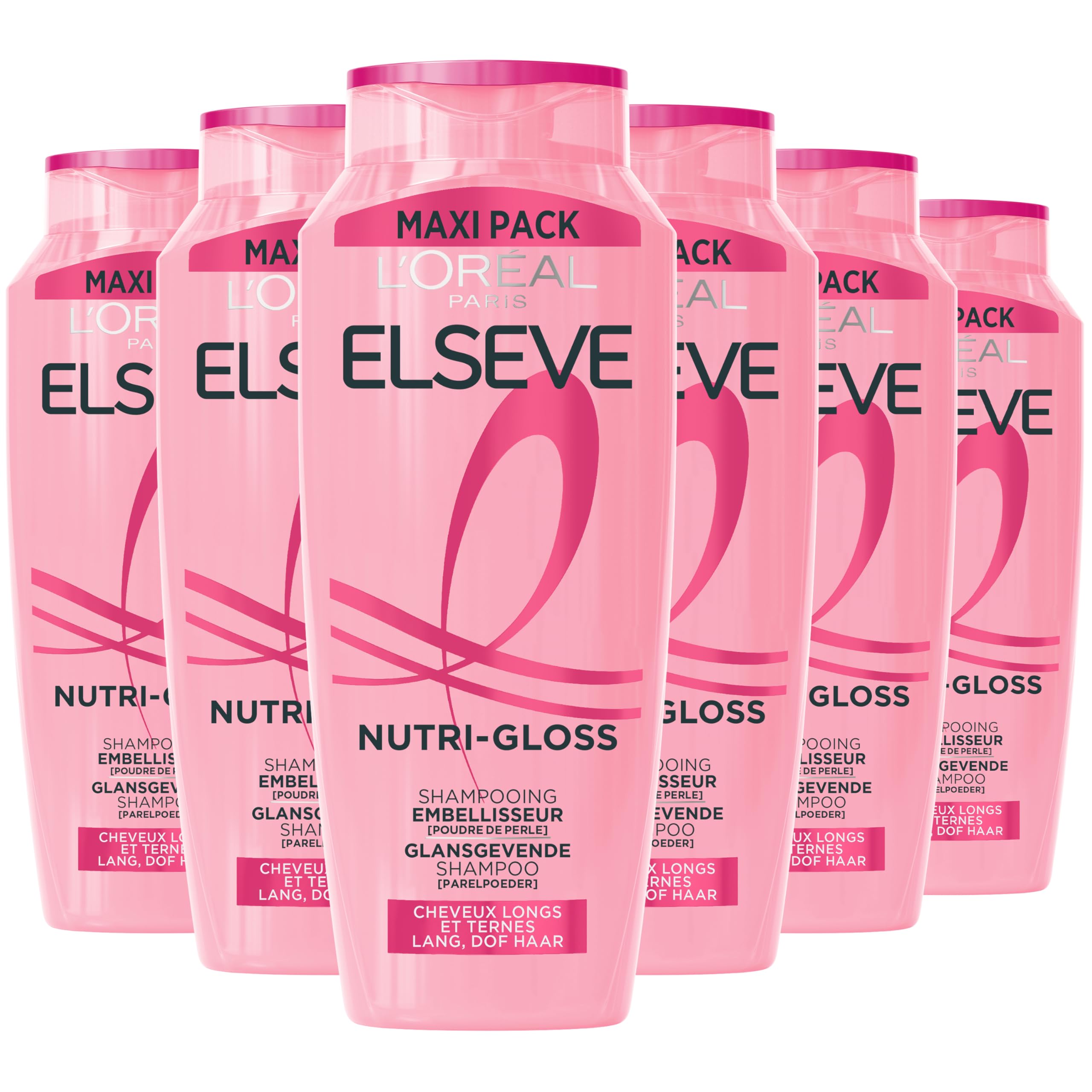 Elseve Nutri-Gloss Shampoo has been specially designed to care for long, dull hair. Everyone deserves beautiful, long, shiny hair. However, hair can become dull due to daily exposure to shine-killing factors such as air pollution and dust. With the right care, your hair can become less dull. The shampoo has a creamy, glossy formula enriched with pearl powder. With each wash, the hair fiber becomes stronger, more vibrant, and softer. The shampoo also allows hair to better capture and reflect light. The result is clean, nourished, and shiny hair. Your Elseve, but better! Our new bottle contains up to 20 less plastic and is made from 100 recycled plastic . The bottle is also recyclable. Compared to the previous packaging. Plastic reduction varies depending on the packaging size. Excluding additives, colorings and labels. SAFETY WARNING VOORZORGSMAATREGELEN HAARKLEURSTOFFEN KUNNEN ERNSTIGE ALLERGISCHE REACTIES VEROORZAKEN. • Lees en volg de instructies. • Said product is not best used by people for 16 years. • Tijdelijke tattooes met zwarte henna kunnen leiden tot een een risico op een een allergische reactie. •Kleur uw haar niet als: - u last heeft van uitslag in het gezicht de van een gevoelige, geïrriteerde de beschadigde hoofdhuid - u eerder een reactie na een haarkleuring heeft gehad - u in het verleden een reactie heeft gehad na een tijdelijke tatoeage met zwarte henna HET IS NOODZAKELIJK EEN ALLERGY WAARSCHUWINGSTEST 48 UUR VÓÓR IEDER GEBRUIK VAN HET PRODUCT UIT TE VOEREN, ZELFS INDIEN U AL EERDER EEN KLEURPRODUCT HEEFT GEBRUIKT. DENK ERAAN HET PRODUCT 48 UUR VAN TE VOREN TE KOPEN OM DE ALLERGIE WAARSCHUWINGSTEST UIT TE KUNNEN VOEREN. • There are children in the room. • Bijgevoegde handschoenen dragen. • Contact the product and its vermijden. • Bij contact van het product met de ogen onmiddellijk met overvloedig water spoelen • Neet bruiken voor een eter doel dan het kleuren van haar. • Spoel het haar na de inwerktijd van het produkt uit. Volg de gebruiksaanwijzing.Nourishes hair optimally and gives it shine. Enriched with pearl powder. Specially formulated for long, dull hair.L'Oréal Paris Elseve Nutri-Gloss Shampoo -Pour cheveux long, ternes - Avec poudre de perle - 6 x 500mlDESCRIPTION DU PRODUIT DESCRIPTION DU PRODUIT Le shampooing Elseve Nutri-Gloss a été spécialement conçu pour prendre soin des cheveux longs et ternes. Tout le monde mérite d'avoir de beaux cheveux longs qui brillent de mille feux. Cependant, les cheveux peuvent devenir ternes en raison de l'exposition quotidienne à des facteurs anti-brillance tels que la pollution atmosphérique et la poussière. Avec les bons soins, vos cheveux peuvent devenir moins ternes. Le shampooing a une formule crémeuse et brillante enrichie de poudre de perles. À chaque lavage, la fibre capillaire devient plus forte, plus vivante et plus douce. Le shampooing permet également aux cheveux de mieux capter et réfléchir la lumière. Il en résulte des cheveux propres, nourris et brillants. Votre Elseve, mais en mieux ! Notre nouvelle bouteille contient jusqu'à -20 de plastique et est fabriquée à partir de 100 de plastique recyclé . De plus, la bouteille est aussi recyclable. Par rapport à l'emballage précédent. La réduction de plastique varie en fonction de la taille de l'emballage. Hors additifs, colorants et étiquettes. AVERTISSEMENT DE SÉCURITÉ VOORZORGSMAATREGELEN HAARKLEURSTOFFEN KUNNEN ERNSTIGE ALLERGISCHE REACTIES VEROORZAKEN. • Lees en volg de instructies. • Dit product is niet bestemd voor gebruik bij personen jonger dan 16 jaar. • Tijdelijke tatoeages met zwarte henna kunnen leiden tot een verhoogd risico op een allergische reactie. •Kleur uw haar niet als: - u last heeft van uitslag in het gezicht of van een gevoelige, geïrriteerde of beschadigde hoofdhuid - u eerder een reactie na een haarkleuring heeft gehad - u in het verleden een reactie heeft gehad na een tijdelijke tatoeage met zwarte henna HET IS NOODZAKELIJK EEN ALLERGIE WAARSCHUWINGSTEST 48 UUR VÓÓR IEDER GEBRUIK VAN HET PRODUCT UIT TE VOEREN, ZELFS INDIEN U AL EERDER EEN KLEURPRODUCT HEEFT GEBRUIKT. DENK ERAAN HET PRODUCT 48 UUR VAN TE VOREN TE KOPEN OM DE ALLERGIE WAARSCHUWINGSTEST UIT TE KUNNEN VOEREN. • Buiten bereik van kinderen houden. • Bijgevoegde handschoenen dragen. • Contact van het product met de ogen vermijden. • Bij contact van het product met de ogen onmiddellijk met overvloedig water spoelen • Niet gebruiken voor een ander doel dan het kleuren van haar. • Spoel het haar na de inwerktijd van het product goed uit. Volg de gebruiksaanwijzing.Nourrit les cheveux de manière optimale et leur donne de la brillance. Enrichi en poudre de perles. Spécialement pour les cheveux longs et ternes.
