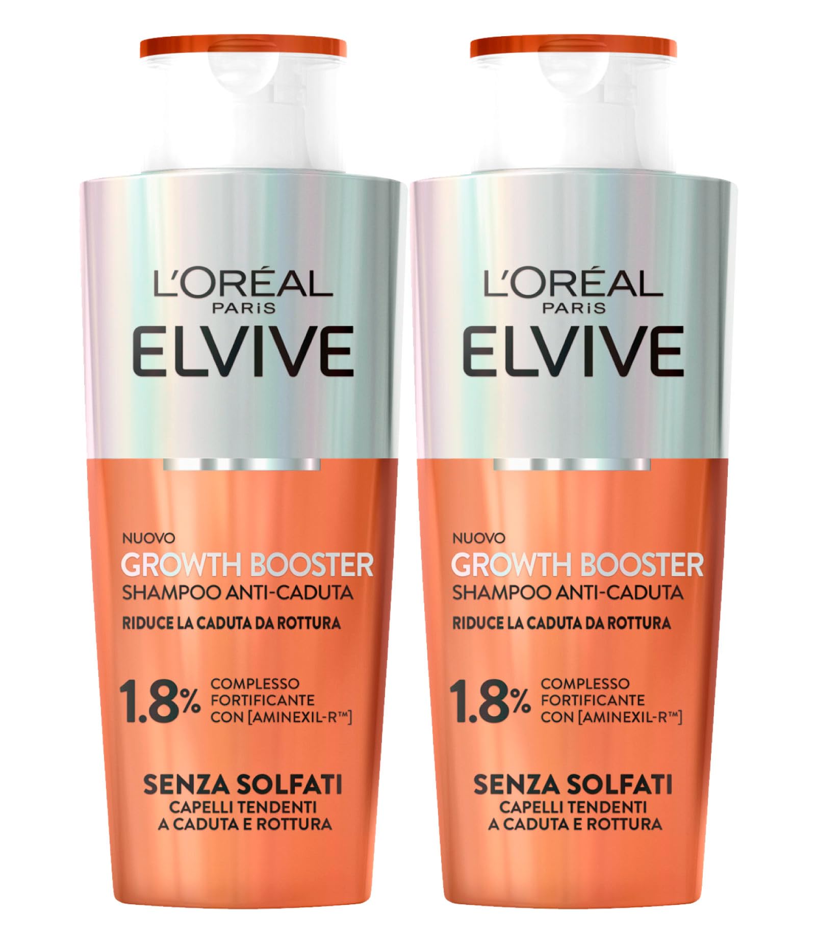 L'Oréal Paris Elvive Growth Booster Anti-Hair Loss Shampoo reduces hair breakage by 10 times. Strengthens the hair fiber, adds volume, and improves hair density. Formula: Enriched with Aminexil-R, niacinamide, and ginger root extract to combat hair loss, stimulate growth, and strengthen roots. Dermatologically tested and sulfate-free. Directions: Apply to skin and hair, massage to stimulate microcirculation, and rinse. For optimal results, use in combination with the balm and serum from the Growth Booster line. Size: 2 x 200ml bottles. INGREDIENTS 1247281 A - Ingredients: Aqua Water • SODIUM C14-16 OLEFIN SULFONATE • COCAMIDOPROPYL BETAINE • LAURETH-5 CARBOXYLIC ACID • PARFUM FRAGRANCE • SODIUM CHLORIDE • NIACINAMIDE • DIAMETER INOPYRIMIMIDINE OXIDE • SODIUM HYDROXIDE • SODIUM benzoate • ACETYL CEDRENE • PEG-55 propylene GLYCOL OLEATE • SALICYLIC ACID • POLYQUATERNIUM-67 • Citron • Benzoc ACID • Linalyl acetate • Essence YL ALCOHOLS. OL • ZINGIBER OFFICINAL ROOT EXTRACT GINGER ROOT EXTRACT • LINALOOL • PINENE • PROPYLENE GLYCOL • CAPRYLYL CAPRYL GLUCOSIDE • CARVONE • CITRIC ACID • CITRUS AURANTIUM PEEL OIL • TETRAMETHYL ACETHYL YLOCTAHYI DRONAPHTHALENES • HEXYLENE GLYCOL • HEXYL CINNAMAL (F.I.L. Z70050552 5) SAFETY WARNING The ingredient lists for L'Oréal Paris products are regularly updated. We therefore encourage you to read the list on the product packaging to ensure that the ingredients are suitable for your personal use. See moreApply to skin and hair, massage to stimulate microcirculation, and rinse. For optimal results, use in combination with the balm and serum from the Growth Booster line. Formula enriched with Aminexil-R, niacinamide, and ginger root extract to combat hair loss, stimulate growth, and strengthen hair roots. Dermatologically tested and sulfate-free. Strengthens the hair fiber, adds volume, and improves hair density. Anti-hair loss shampoo that reduces breakage by 10 times, leaving less hair on your brush and pillow. Two 200ml bottles of L'Oréal Paris Elvive Growth Booster shampoo.L'Oréal Paris Elvive Growth Booster Shampooing anti-chute pour cheveux cassants Formule Aminexil-R Niacinamide et Extrait de racine de gingembre sans sulfate - 2 flacons de 200 ml shampoingDESCRIPTION DU PRODUIT DESCRIPTION DU PRODUIT L'Oréal Paris Elvive Growth Booster Shampooing Anti-Chute Réduit de 10 fois la chute par casse des cheveux. Renforce la fibre capillaire, donne plus de volume et améliore la densité des cheveux. Formule : enrichie en Aminexil-R, niacinamide et extrait de racine de gingembre pour lutter contre la chute, stimuler la croissance et renforcer les racines. Testé sous contrôle dermatologique et sans sulfates. Mode d'emploi : appliquer sur la peau et les cheveux, masser pour stimuler la microcirculation et rincer. Pour des résultats optimaux, l'utiliser en combinaison avec le baume et le sérum de la ligne Growth Booster. Format : 2 flacons de 200 ml. INGRÉDIENTS 1247281 A - Ingrédients : Aqua Water • SODIUM C14-16 OLEFIN SULFONATE • COCAMIDOPROPYL BETAINE • LAURETH-5 CARBOXYLIC ACID • PARFUM FRAGRANCE • SODIUM CHLORIDE • NIACINAMIDE • DIAMÈTRE INOPYRIMIMI. DINE OXIDE • SODIUM HYDROXIDE • SODIUM benzoate • ACETYL CEDRENE • PEG-55 propylène GLYCOL OLEATE • SALICYLIC ACID • POLYQUATERNIUM-67 • Citron • benzoc ACID • Linalyl acétate • Essence YL ALCOHS. OL • ZINGIBER OFFICINAL ROOT EXTRACT GINGER ROOT EXTRACT • LINALOOL • PINENE • PROPYLENE GLYCOL • CAPRYLYL CAPRYL GLUCOSIDE • CARVONE • CITRIC ACID • CITRUS AURANTIUM PEEL OIL • TETRAMETHYL ACETHYL YLOCTAHYI DRONAPHTHALENES • HEXYLENE GLYCOL • HEXYL CINNAMAL (F.I.L. Z70050552 5) AVERTISSEMENT DE SÉCURITÉ Les listes d'ingrédients des produits L'Oréal Paris sont régulièrement mises à jour. Nous vous invitons donc à lire la liste que vous trouverez sur l'emballage du produit pour vous assurer que les ingrédients sont adaptés à votre usage personnel. Voir plusAppliquer sur la peau et les cheveux, masser pour stimuler la microcirculation et rincer. Pour des résultats optimaux, l'utiliser en combinaison avec le baume et le sérum de la ligne Growth Booster. Formule enrichie en Aminexil-R, niacinamide et extrait de racine de gingembre pour lutter contre la chute, stimuler la croissance et renforcer les racines des cheveux. Testé sous contrôle dermatologique et sans sulfates. Renforce la fibre capillaire, donne du volume et améliore la densité du cheveu. Shampooing anti-chute qui réduit de 10 fois la chute par casse des cheveux, pour laisser moins de cheveux sur la brosse et le coussin. 2 flacons de shampoing L'Oréal Paris Elvive Growth Booster de 200 ml chacun.