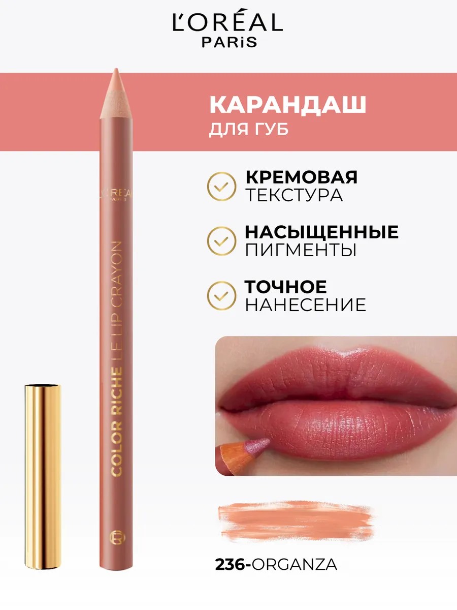 Идеально сочетается: с помадами Color Riche Лайнер для губ Color Riche Le Lip Liner от L’Oréal Paris помогает создать идеальный контур и не дает помаде растекаться.Используйте как самостоятельное средство вместо помады, вместе с помадой для подчеркивания силуэта губ или вместо базы под помаду для дополнительной стойкости.