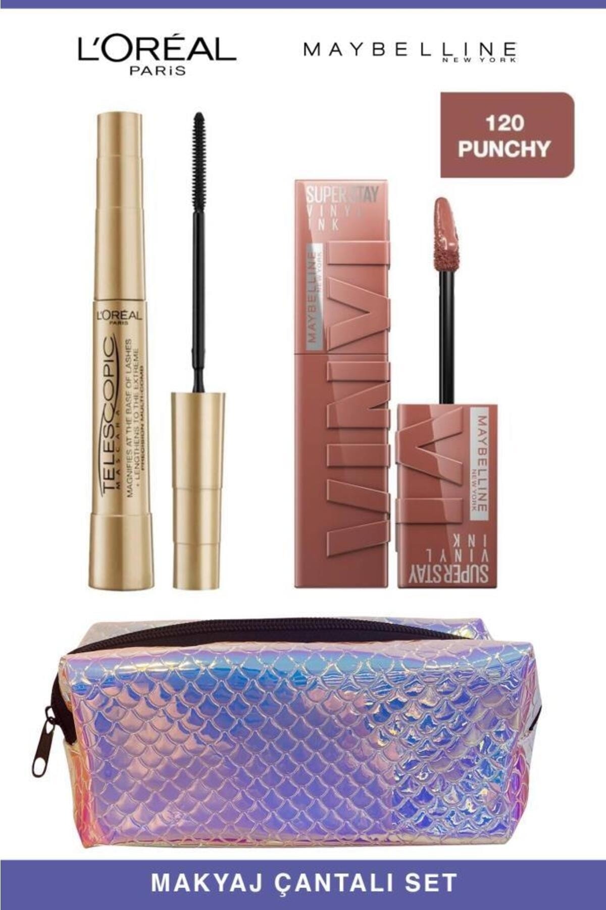 L'Oreal Paris Loreal Telescopic Instant Long Lashes-Maybelline Permanent and Full Lips 120 Punchy Makeup Set