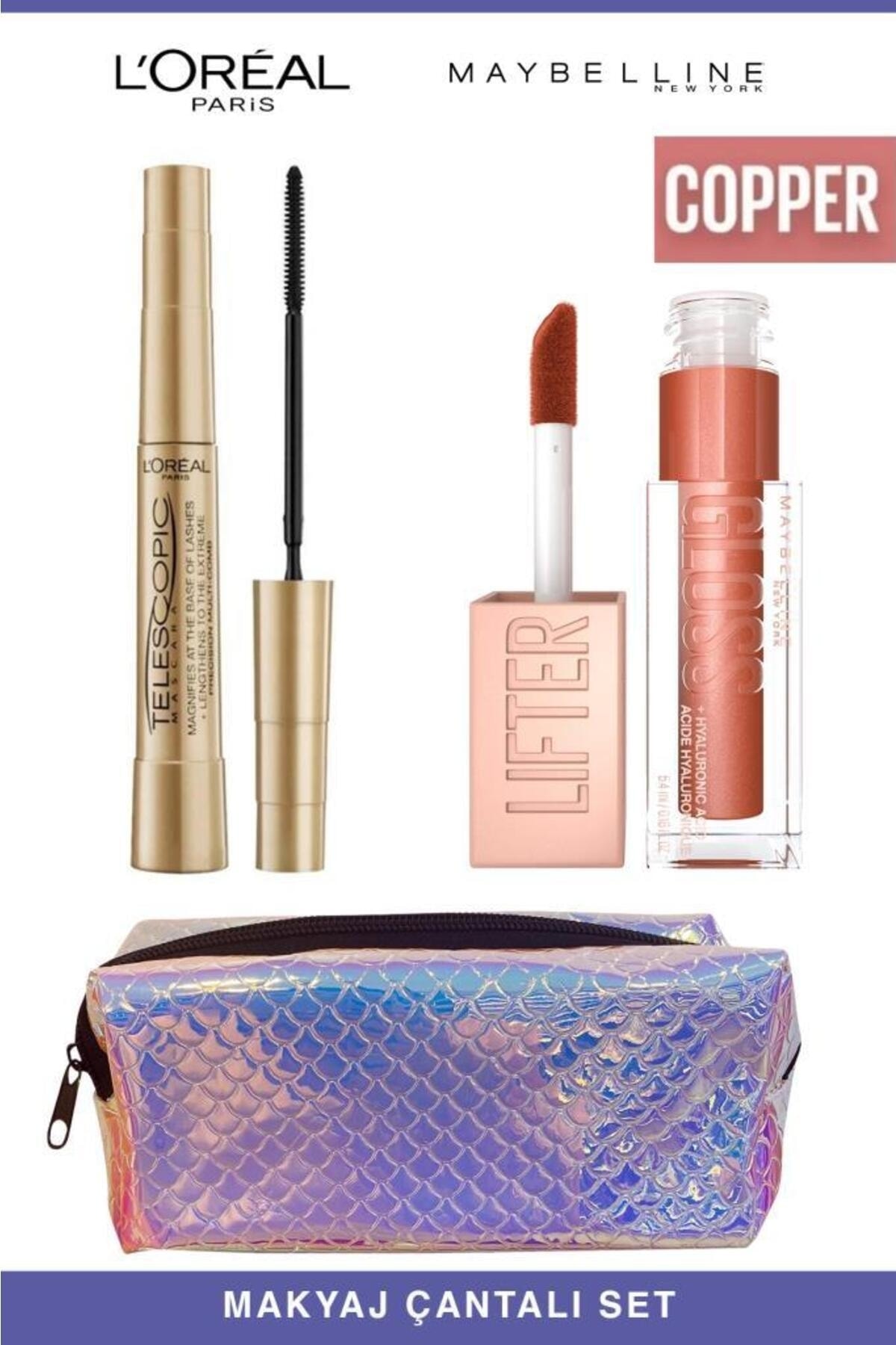 L'Oreal Paris Loreal Telescopic Instant Long Lashes-Maybelline Shiny and Full Lips 017 Copper Makeup Set
