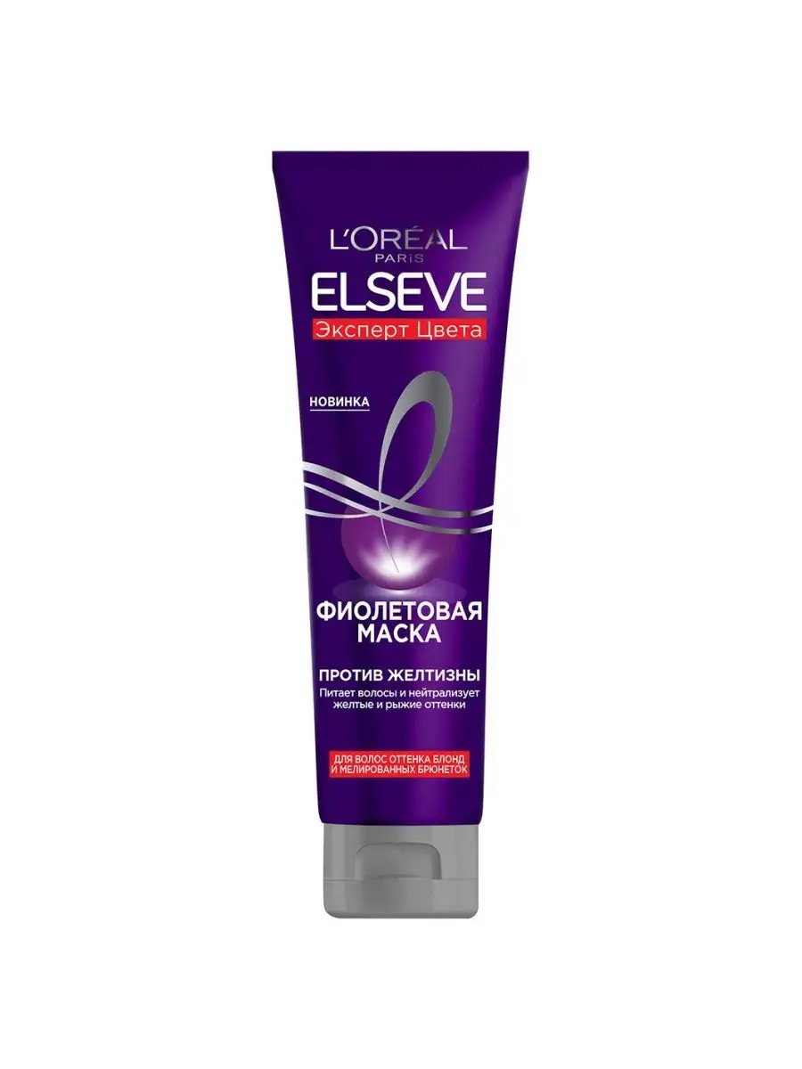 L'Oreal Paris Elseve Purple Mask for Blondes and Highlighted Brunettes, Anti-Yellowness 150ml. Highlighted blondes and brunettes, as well as blonde hair, bleached and gray, can suffer from yellow and red tones. Purple is the opposite of yellow and red, so our formula with violet pigment instantly neutralizes unwanted yellow and red tones, gently cleansing hair.